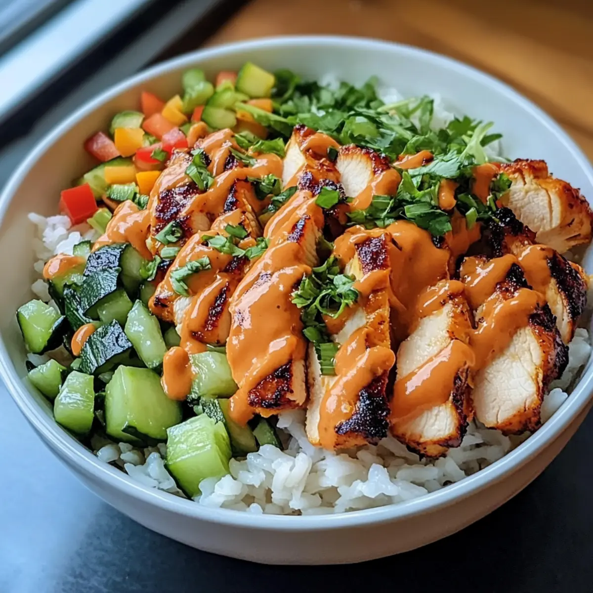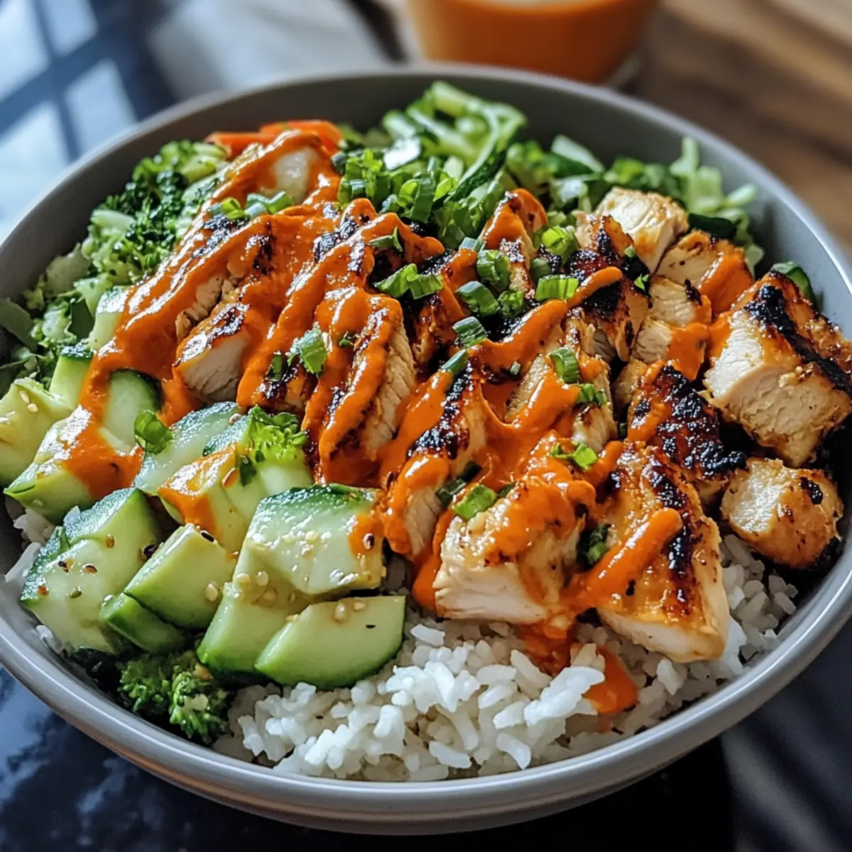 Kreative Variationen: Probiere verschiedene Variationen des Rezepts aus, indem du andere Proteine wie Garnelen oder Tofu verwendest – der Bang Bang Hähnchen Bowl bleibt wunderbar.