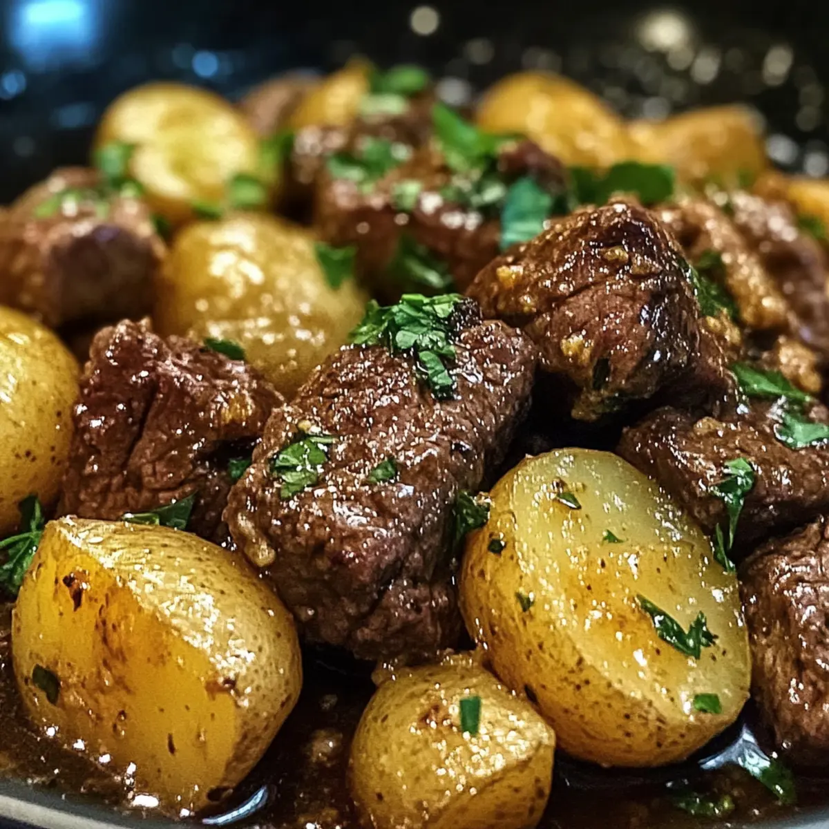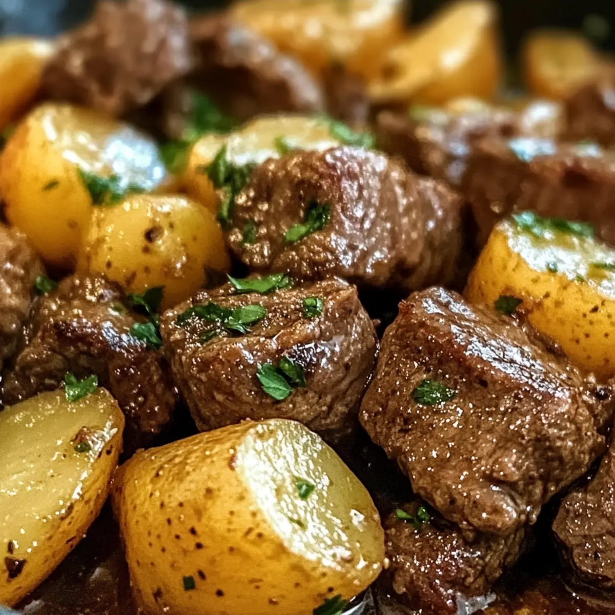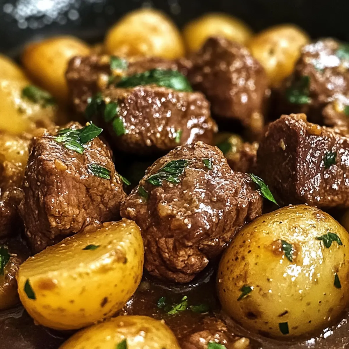 Butter-Rindfleisch-Bissen mit zarten Kartoffeln