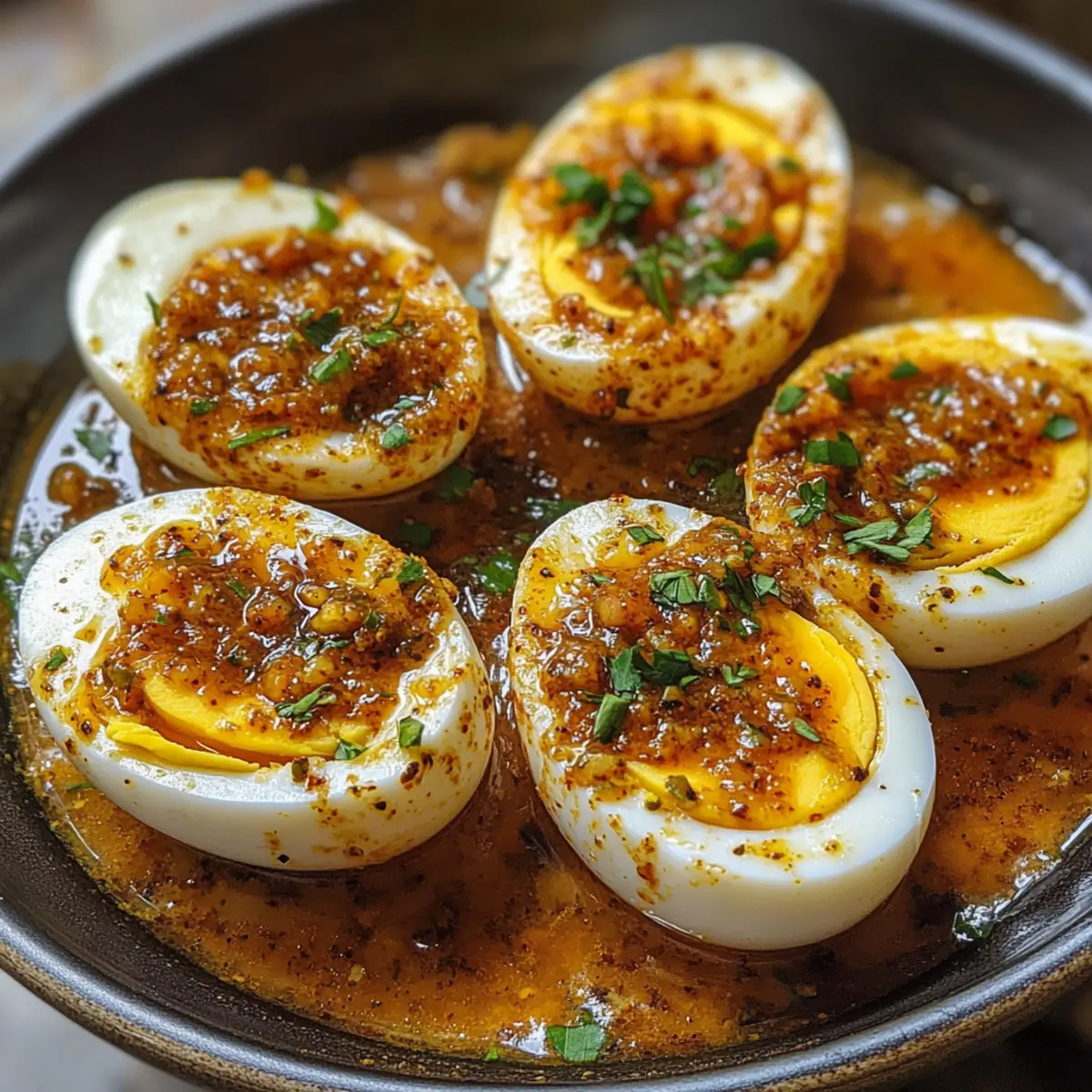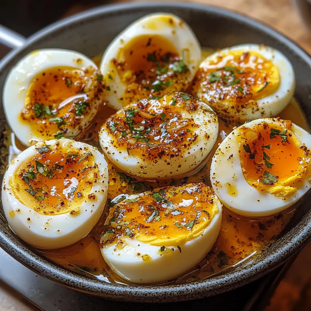 Cajun gekochte Eier mit würziger Knoblauchbutter