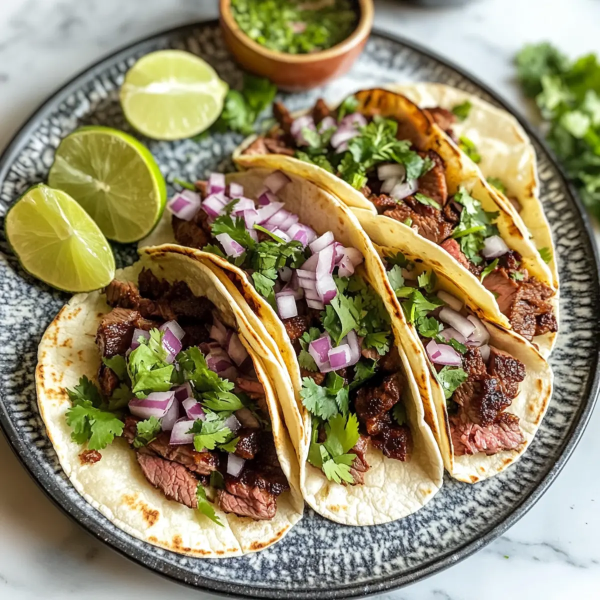 - Salsa Fresca: Eine frische Mischung aus Tomaten, Zwiebeln und Koriander bringt eine würzige Note, die jeden Biss der Carne Asada Tacos lebendig macht.