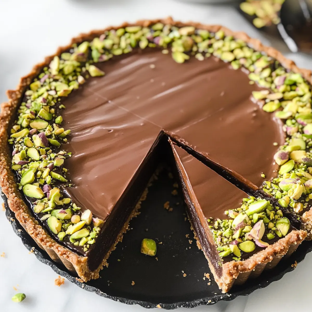 Schokoladentarte ohne Backen mit Pistazienpaste