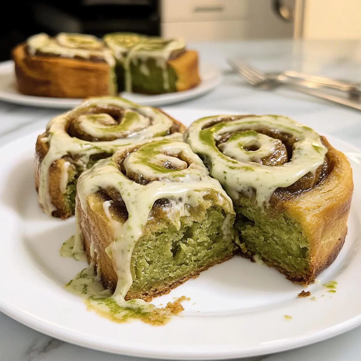Himmlische Matcha Zimtschnecken mit Frischkäse-Frosting