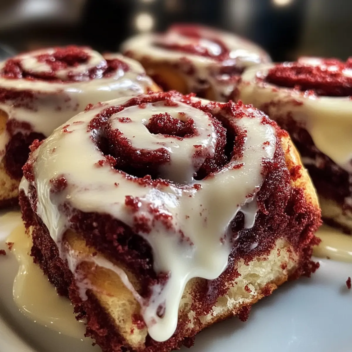 Rot Samt Zimtschnecken mit Frischkäseglasur