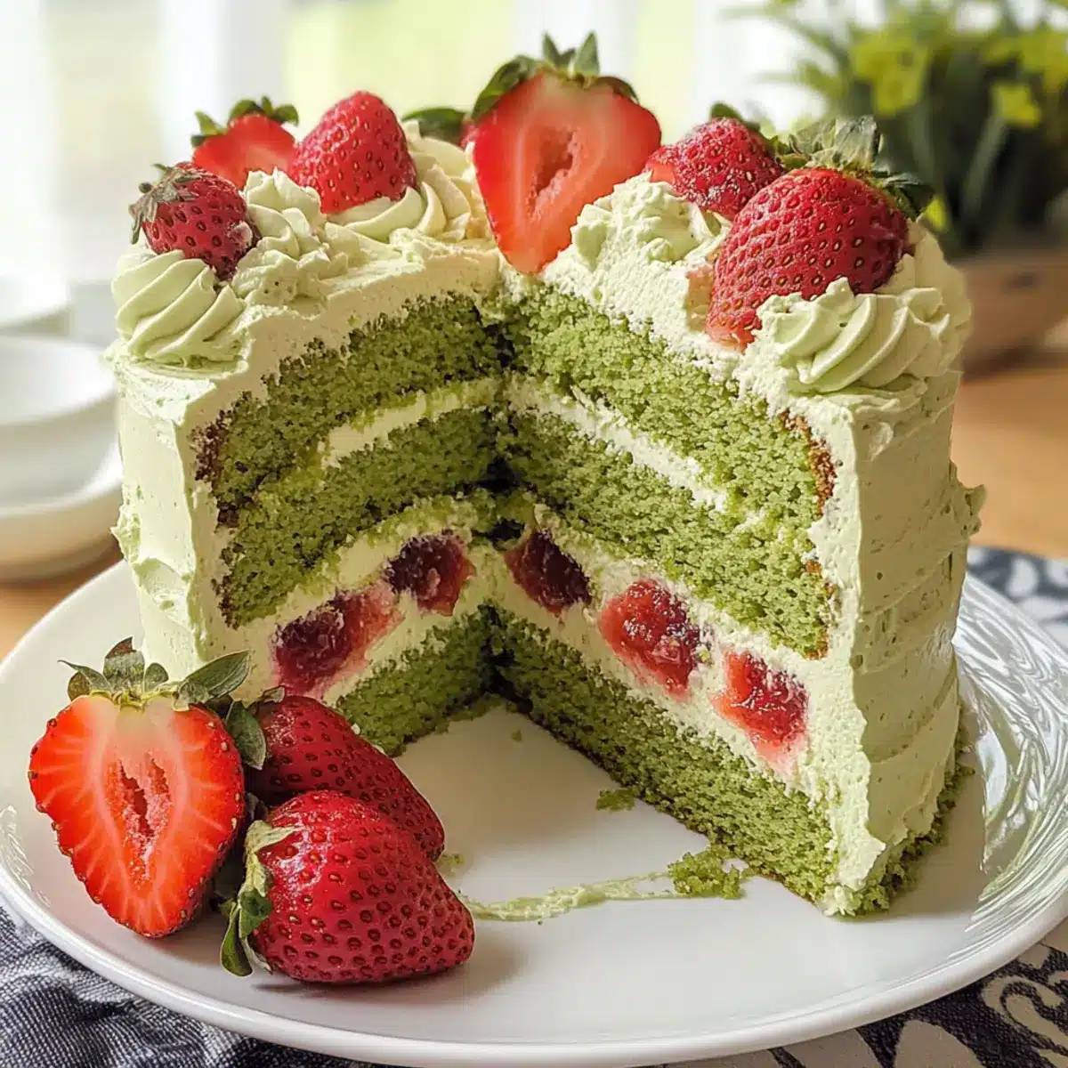 Erdbeer-Matcha-Kuchen mit fluffiger Creme