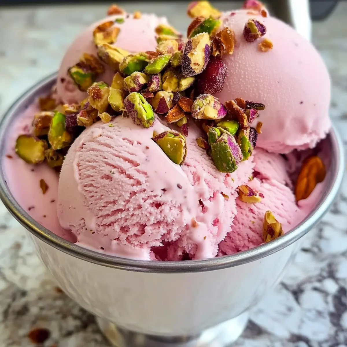 Rosen-Eiscreme mit Pistazien und Karamellnüssen