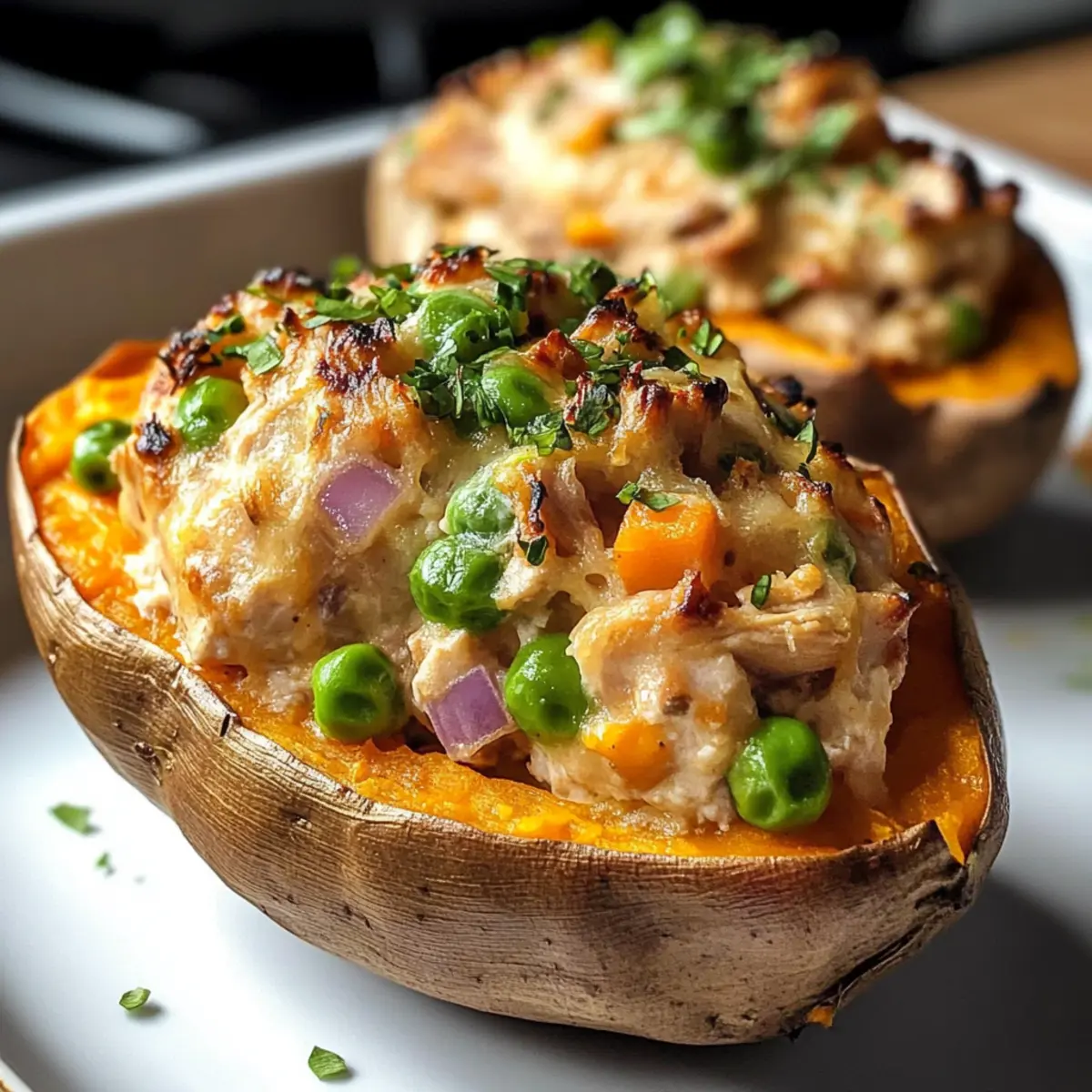 Hühnchen-Pastete mit gefüllten Süßkartoffeln