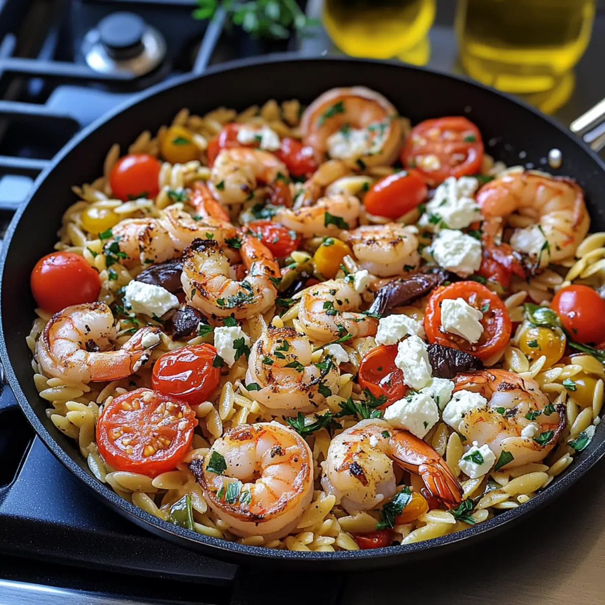 Griechische Garnelen mit Orzo und Feta zaubern Genüsse