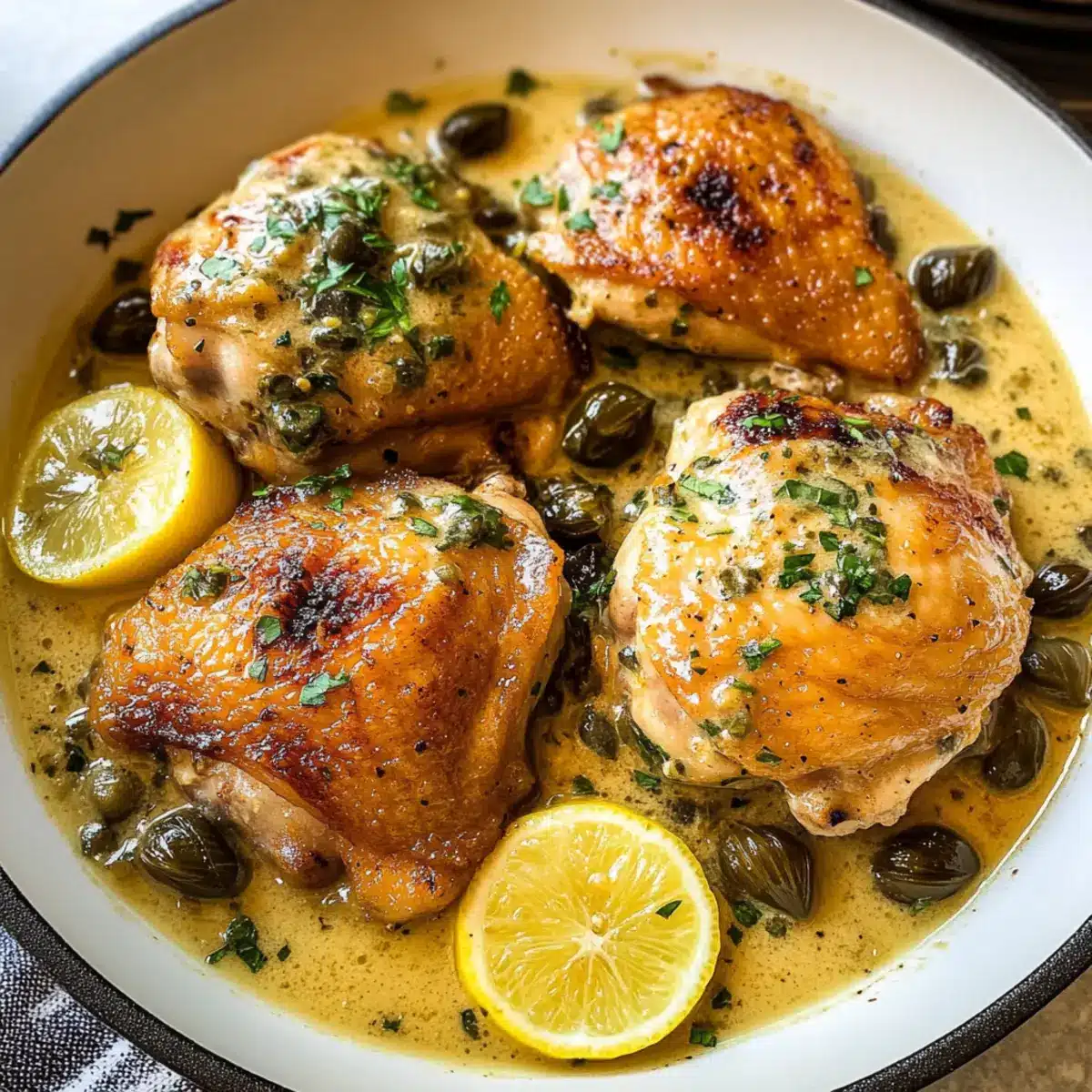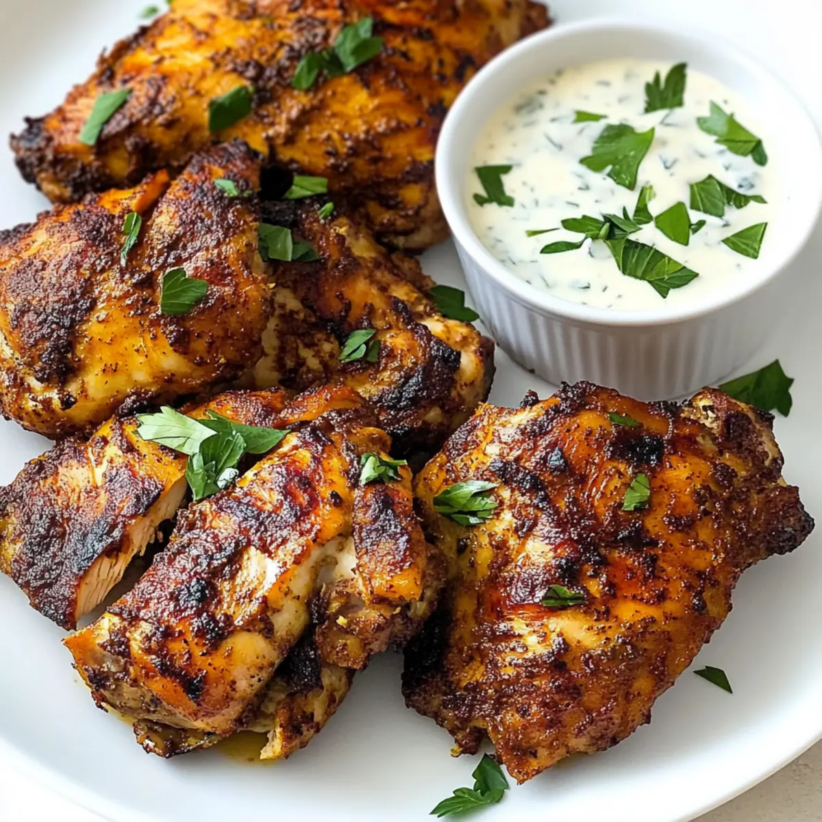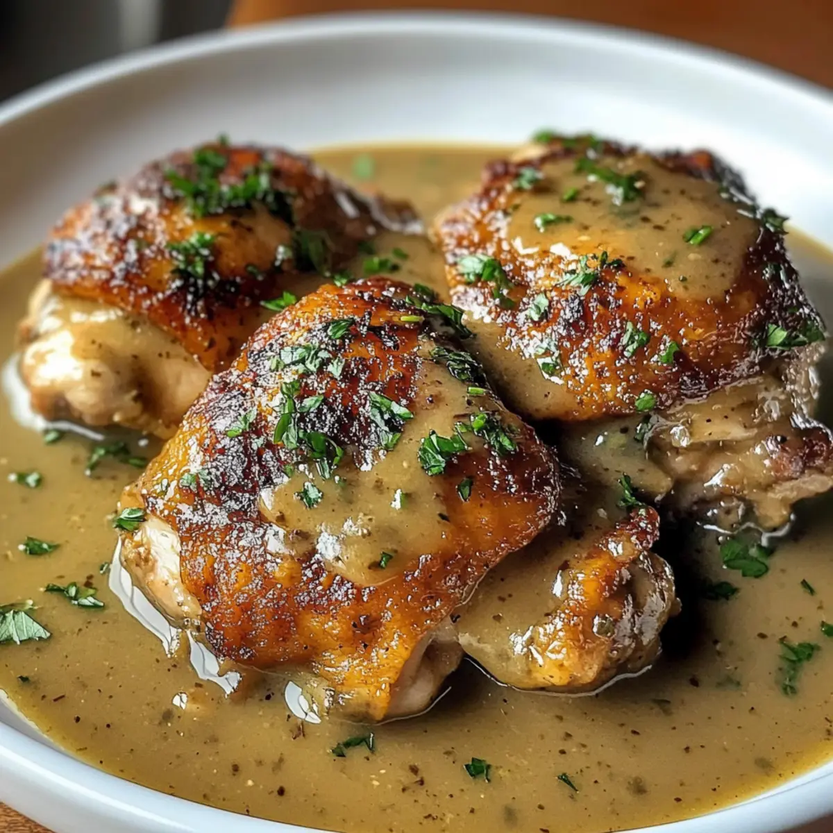 Überbackene Hähnchenschenkel mit cremiger Sauce