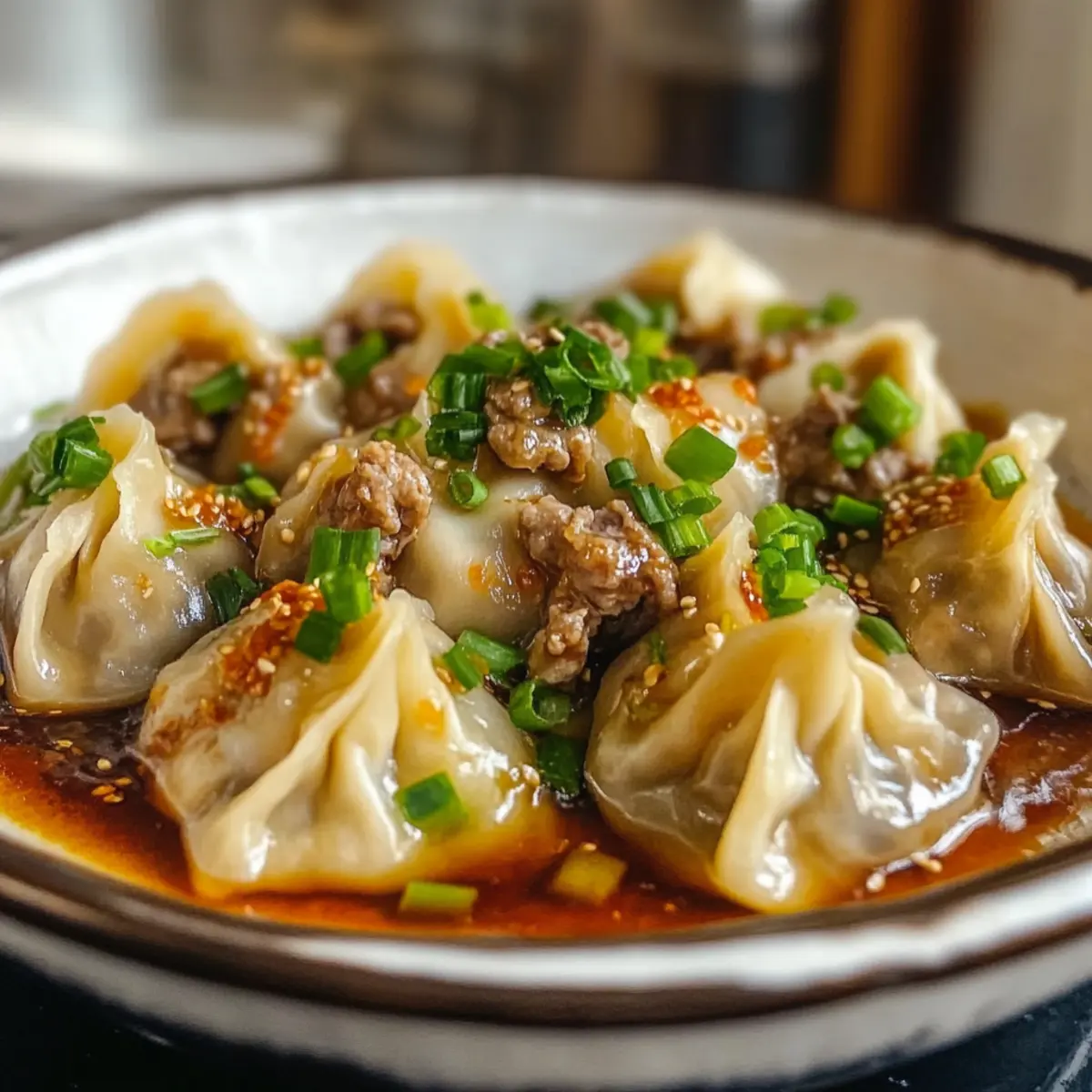 Deckenknödel mit Chiliöl und Rinderfüllung
