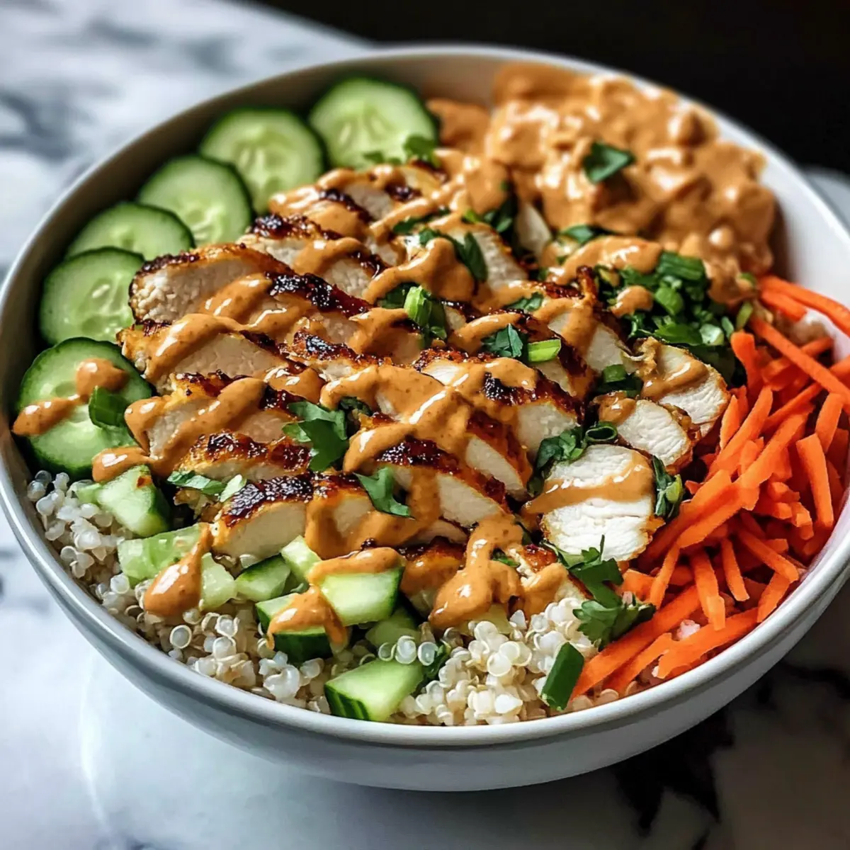 Hühnchen Buddha Schüssel mit Erdnusssauce