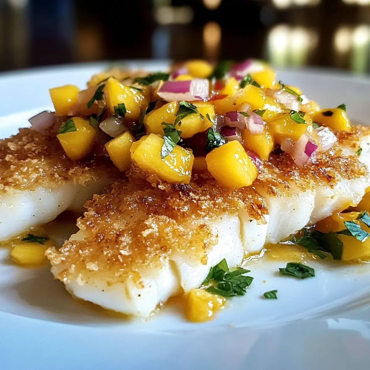Kokosnusskruste Fisch mit Mango Salsa genießen
