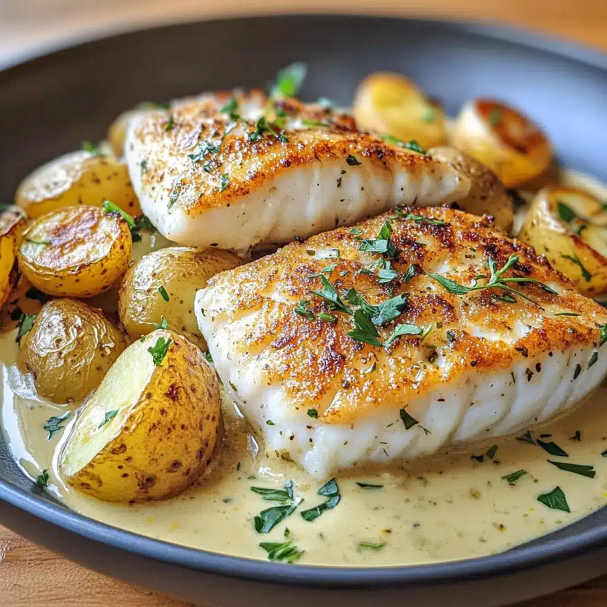 Pfannenröstung: Flunder mit cremigen Kartoffeln
