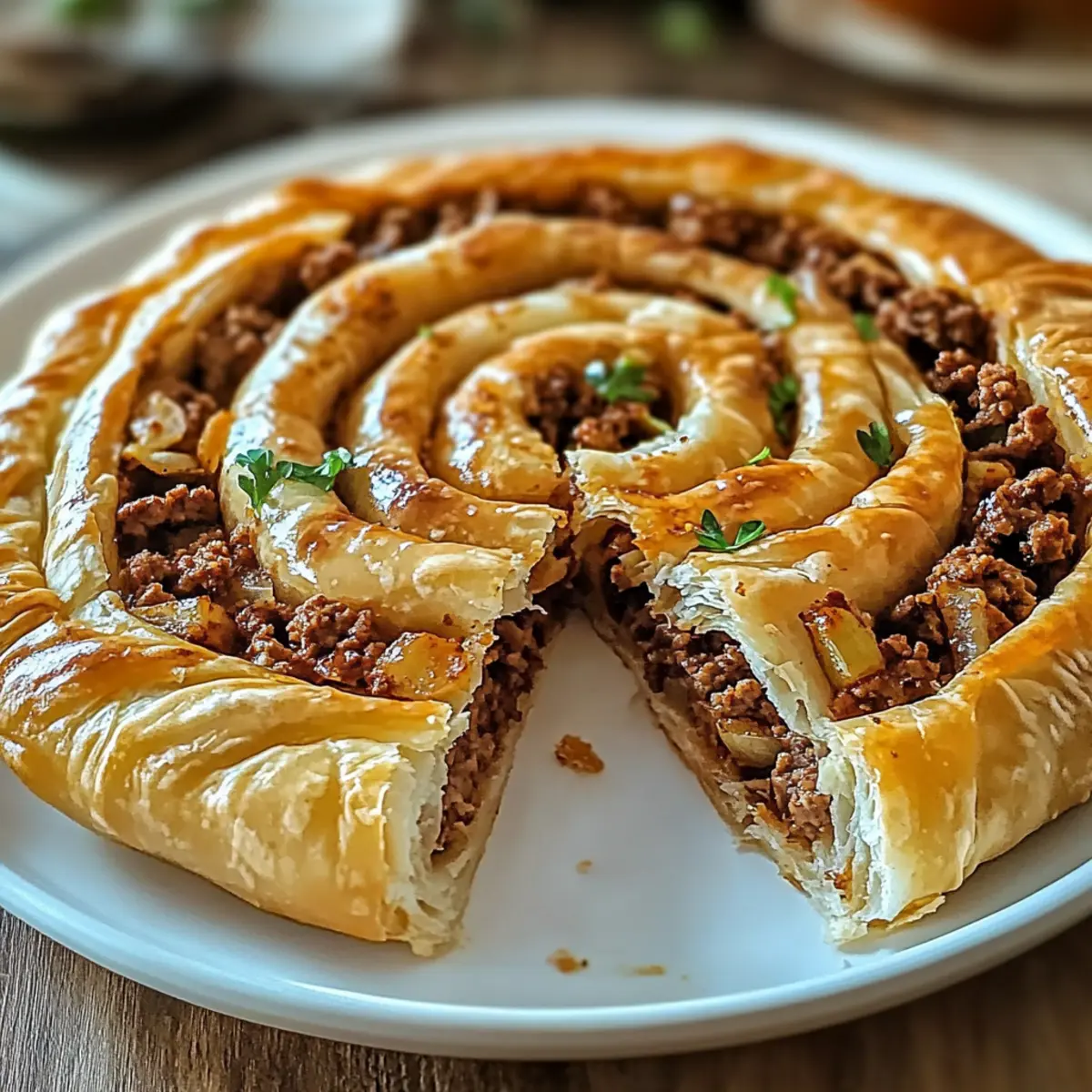 Köstlicher Spiralförmiger Börek mit Fleischfüllung