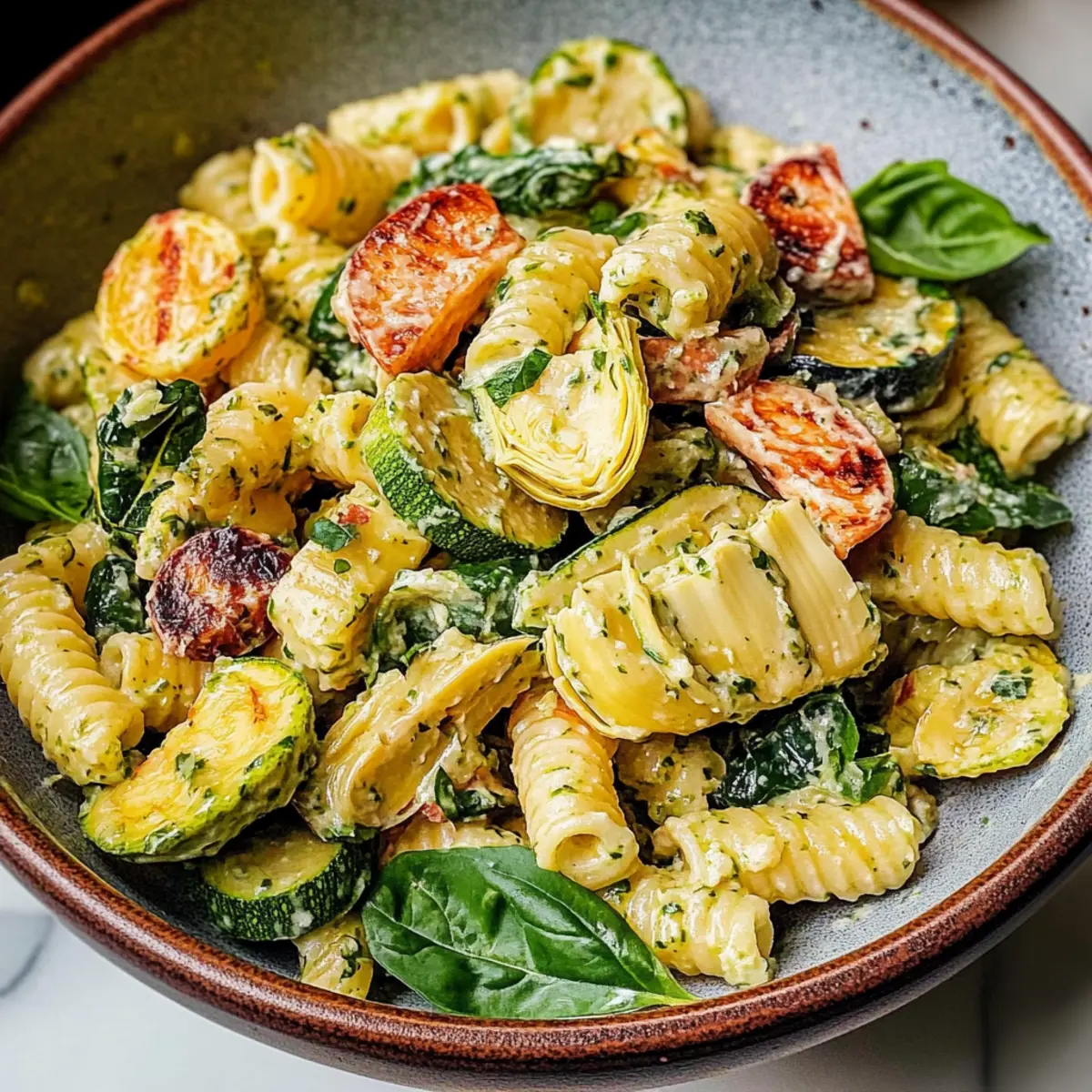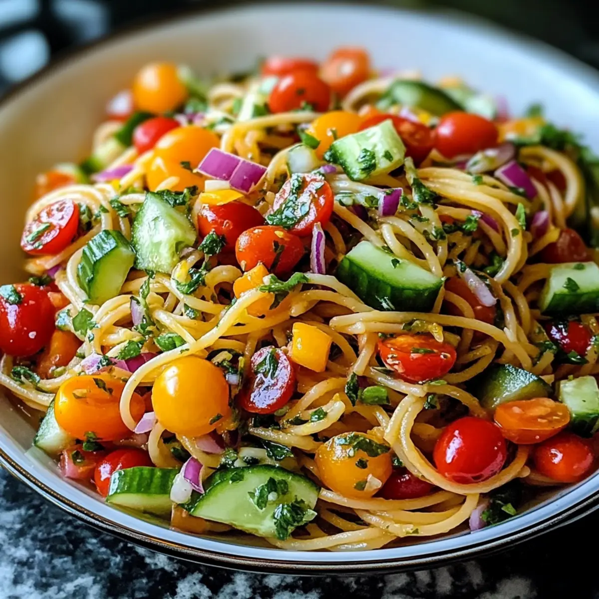 Frischer Spaghetti-Salat mit italienischem Dressing