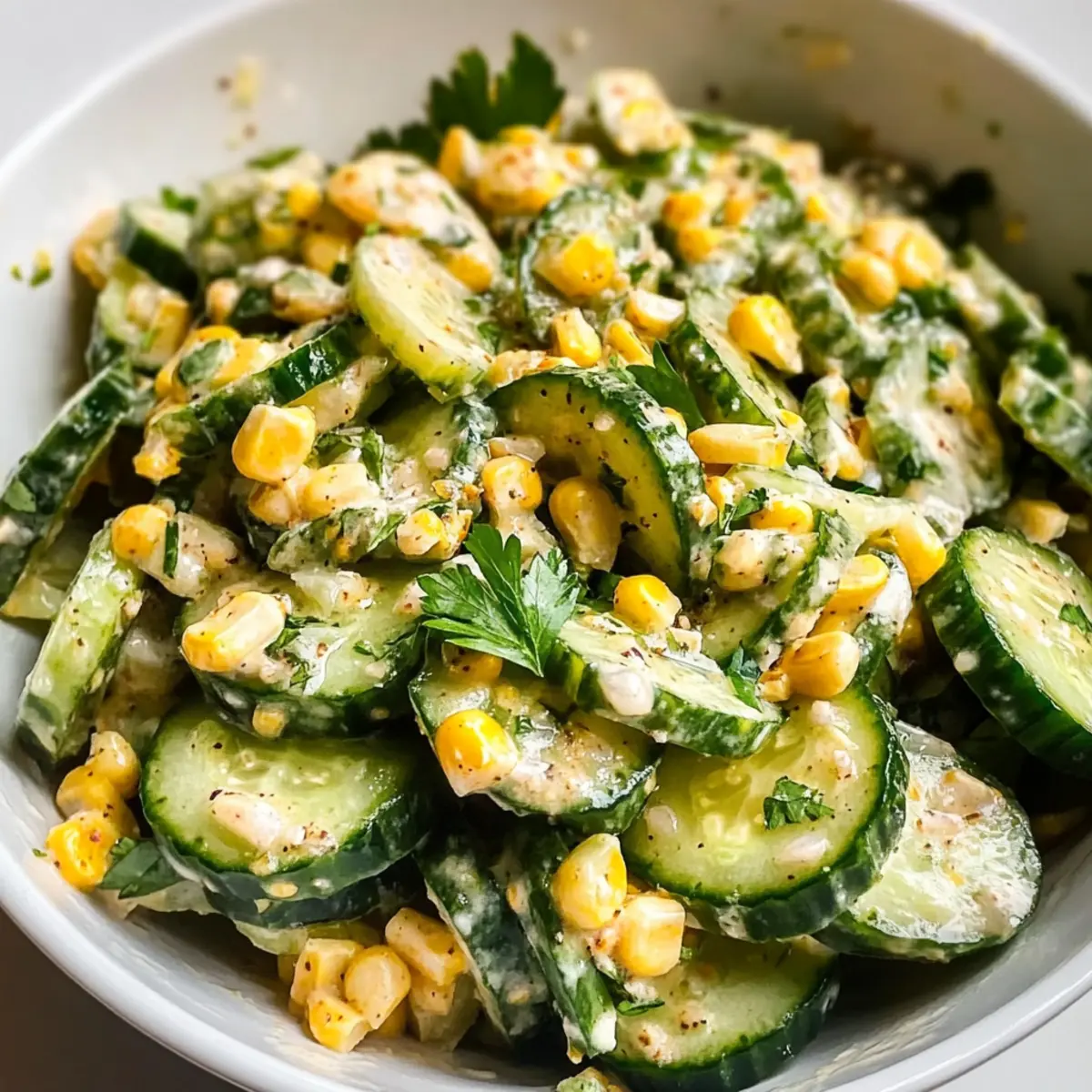 Frischer Mexikanischer Gurkensalat mit Elote-Dressing