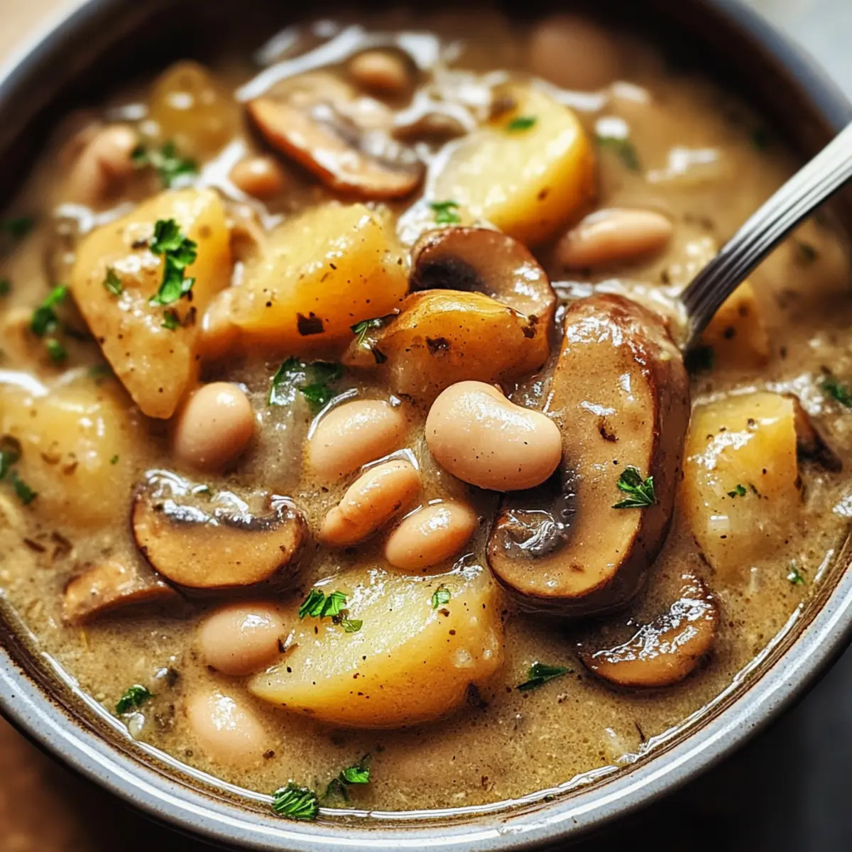 Herzhafter Weiße Bohne Pilz Eintopf für den Winter