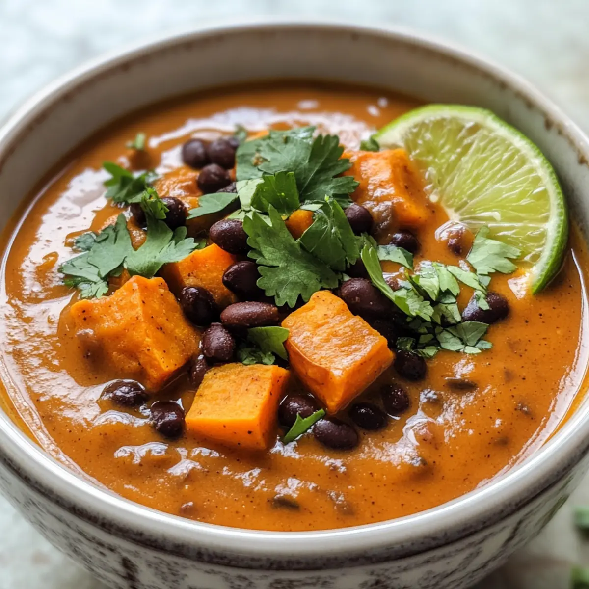 Süßkartoffelsuppe mit schwarzen Bohnen genießen