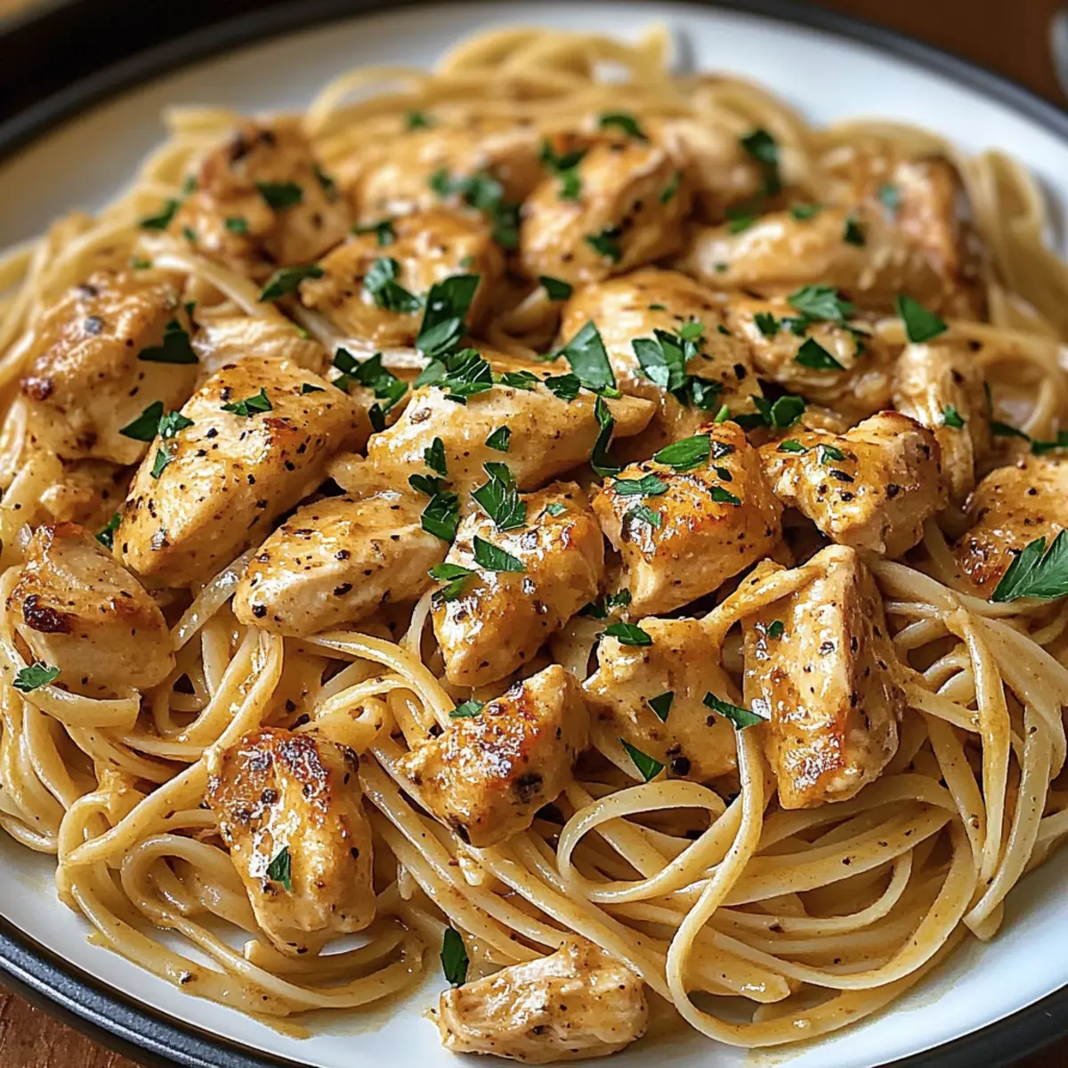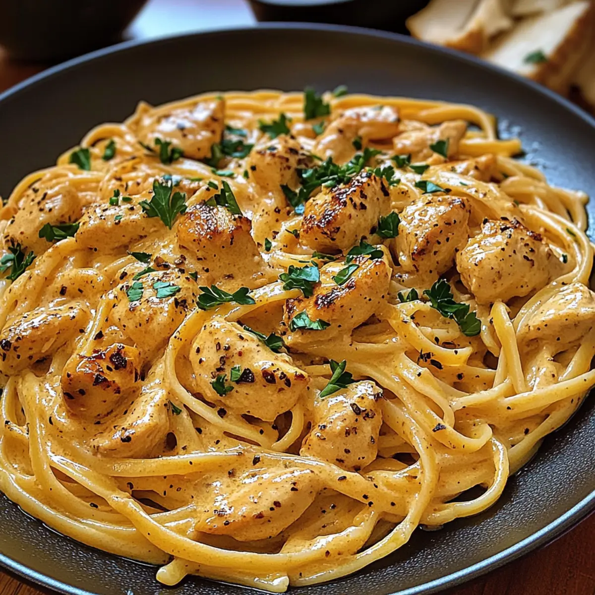 Die Kombination aus cremigem Cowboy Butter Hähnchen Linguine lädt zu einem feinen Festmahl ein, das alle Sinne anspricht.