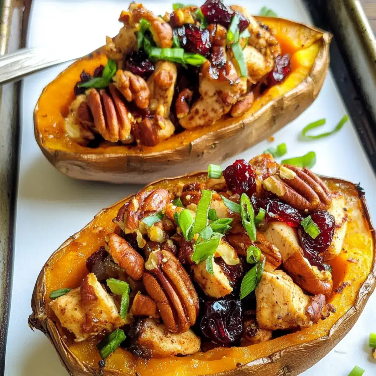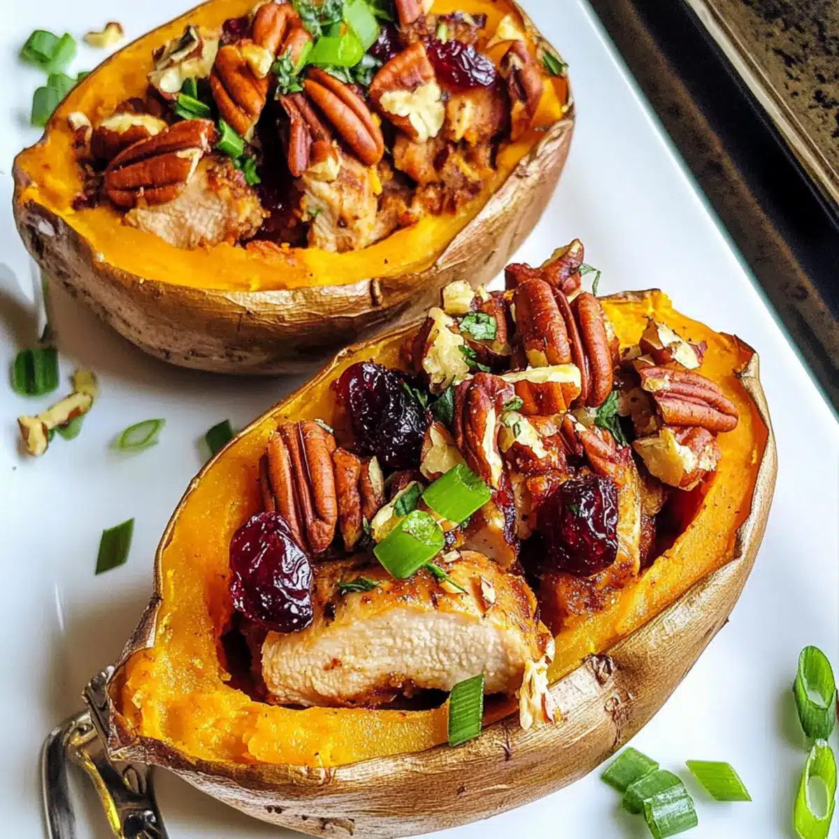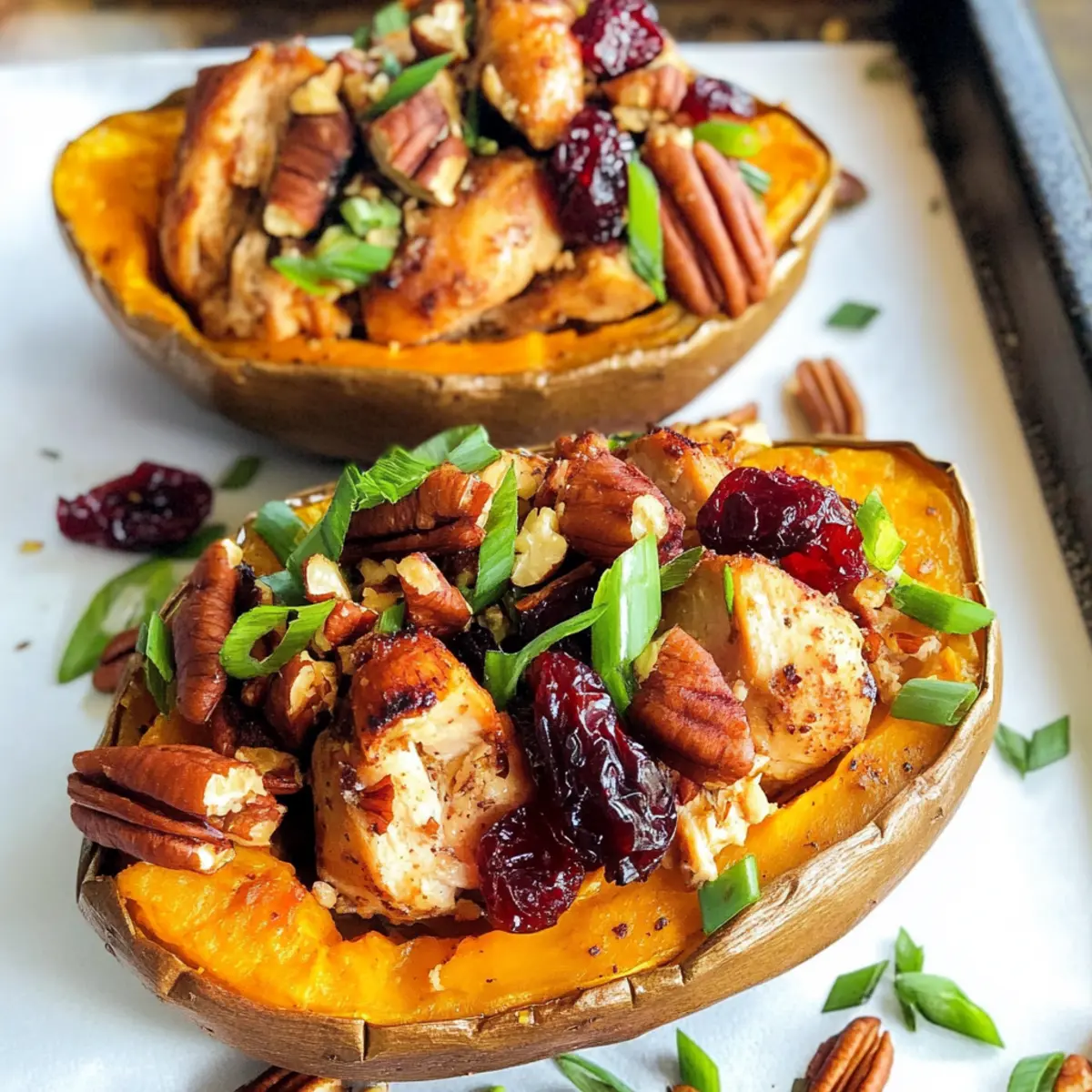 Schritt-für-Schritt-Anleitungen für Cranberry Pecan Hähnchen gefüllte Süßkartoffeln