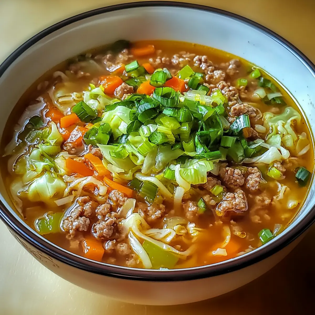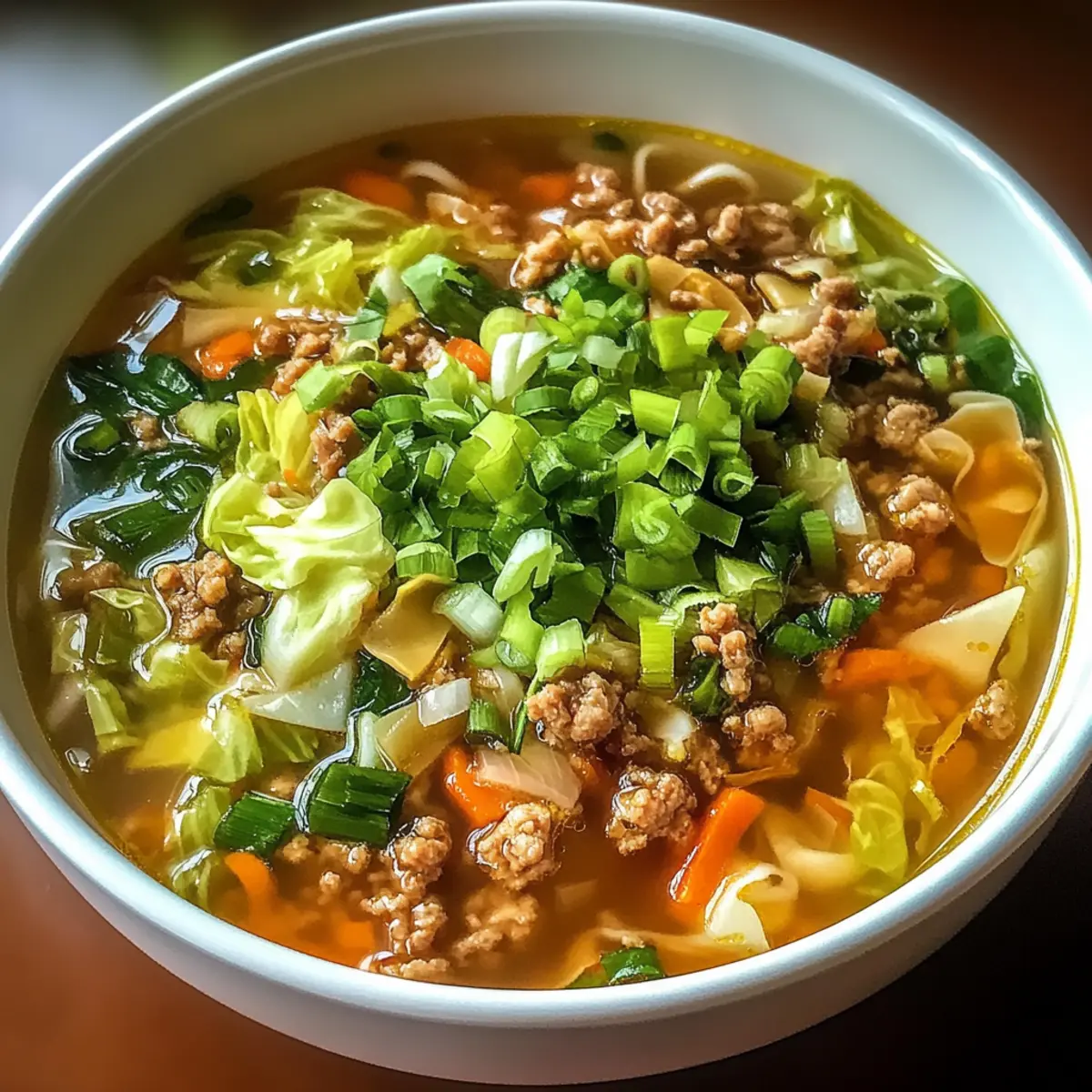 Hast du jemals einen ganz besonderen Moment gehabt, in dem sich alle Sinne vereinten? So fühlt es sich an, wenn ich den ersten Löffel meiner One-Pot Eierrollen Suppe genieße. Dieses Gericht bringt die vertrauten Aromen von klassischen Eierrollen in eine wunderbar wärmende Suppe, die nicht nur einfach zuzubereiten ist, sondern auch perfekt für kühle Abende. Mit zartem Schweinehack, knackigem Kohl und einer Prise frischem Ingwer ist diese low-carb und keto-freundliche Variante eine großartige Möglichkeit, sich von Fast Food zu verabschieden und gleichzeitig den Heißhunger zu stillen. Gönn dir etwas Besonderes und entdecke, wie du die Zutaten beliebig abwandeln kannst, um deine persönliche Lieblingsversion zu kreieren. Was könnte die nächste Kombination deines Herzens werden?