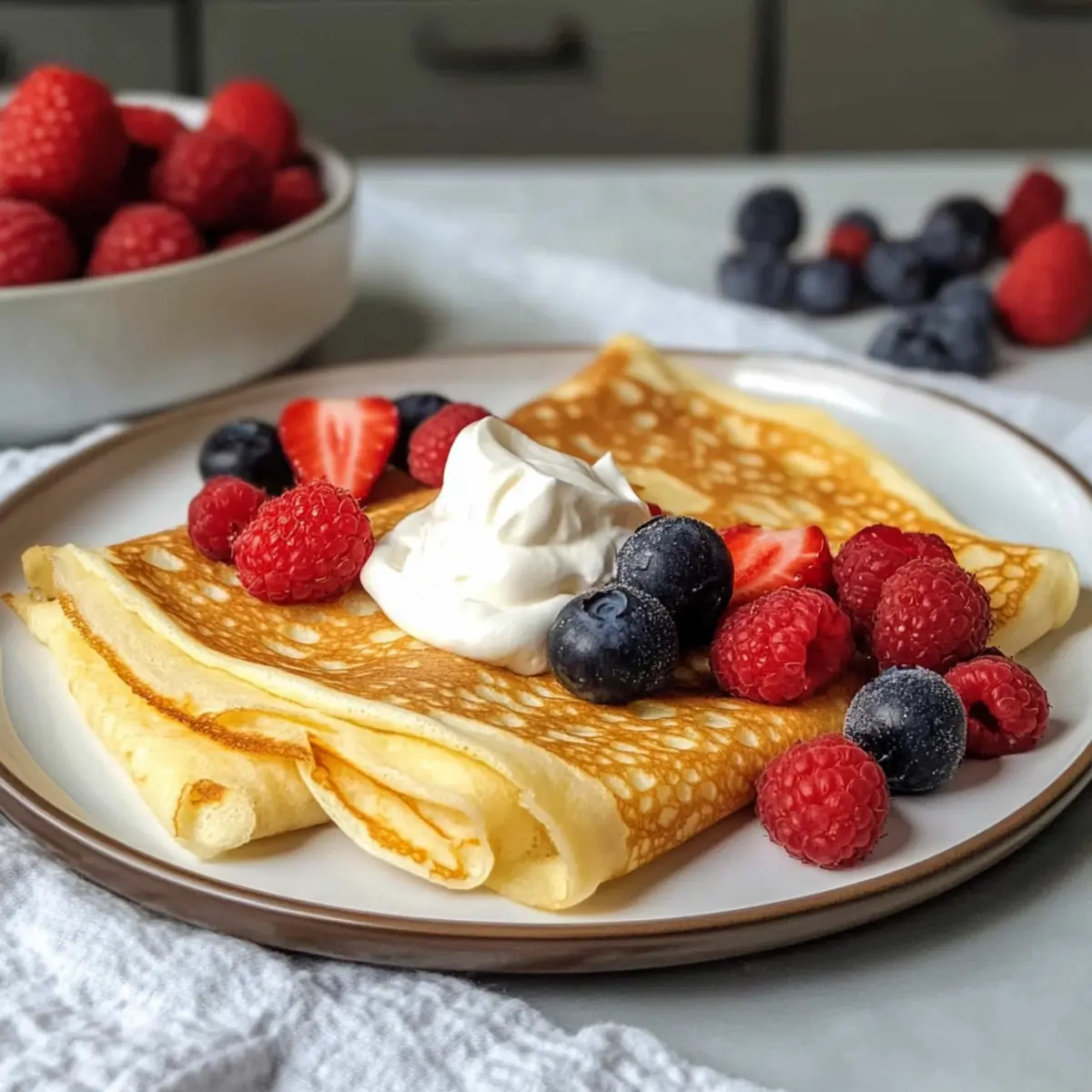 Frisches Obst: Die Kombination aus süßen Beeren oder saftigen Bananen bringt Farbe und Frische zu den Crêpes. Saftige Früchte bieten den perfekten Ausgleich zu der zarten Textur.