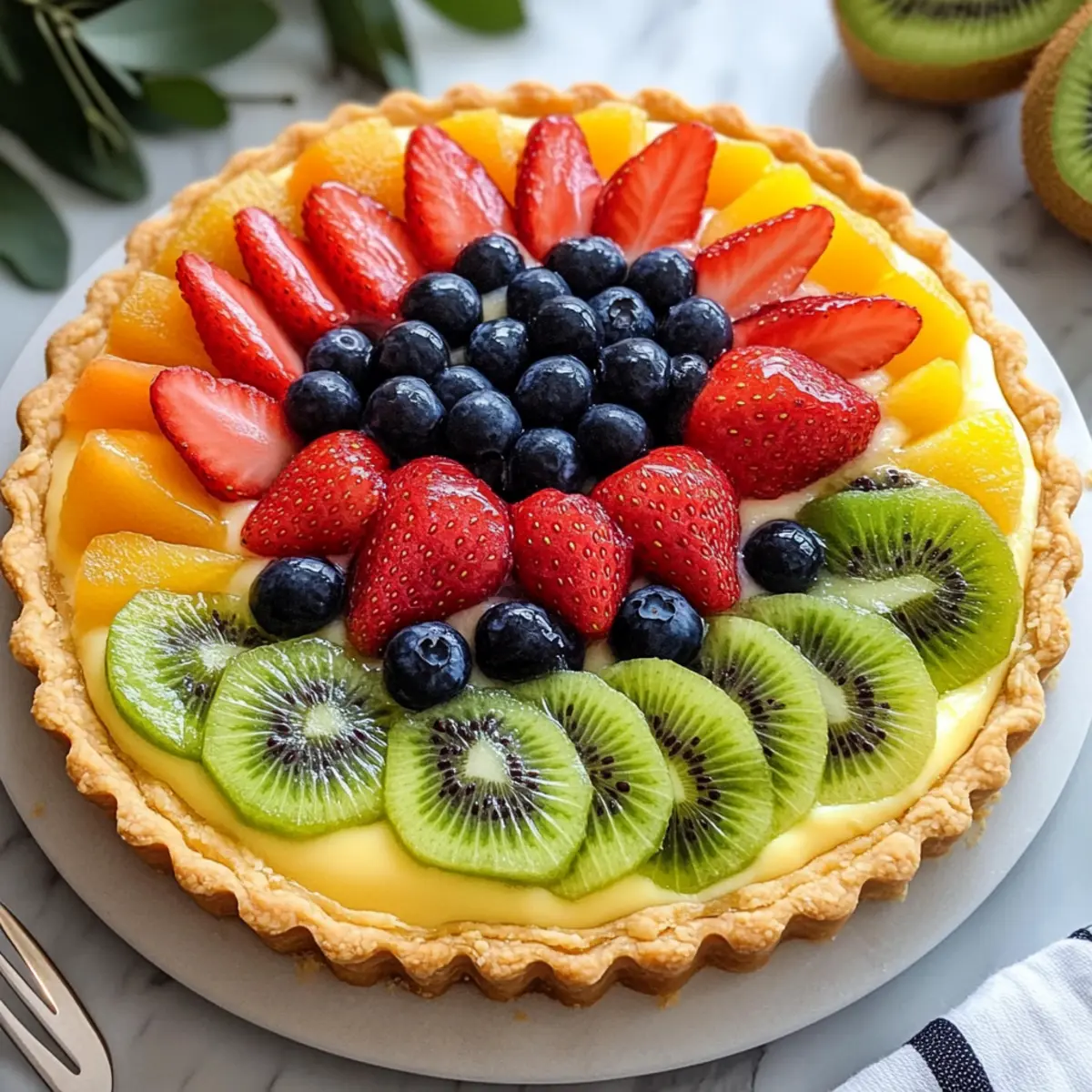 Frische, bunte Früchte: Unsere klassische französische Obsttarte ist mit einer Vielzahl an saisonalen, frischen Früchten belegt, die nicht nur schön aussehen, sondern auch für einen unglaublichen Geschmack sorgen. Einfach zuzubereiten: Die Kombination aus buttrigem Mürbeteig und cremigem Vanillepudding macht dieses Rezept leicht nachzuvollziehen, auch für Küchenanfänger. Perfekte Eleganz: Egal ob bei einem Familienfest oder einem gemütlichen Abend mit Freunden, diese Tarte wird alle Gäste beeindrucken! Flexible Variationen: Du kannst die Früchte nach Saison oder Vorlieben anpassen – kreiere immer wieder neue Geschmackserlebnisse! Köstlicher Genuss: Serviere die Tarte mit einem Klecks Schlagsahne für das vollständige Geschmackserlebnis, oder entdecke weitere tolle Dessert-Rezepte auf unserem Blog!