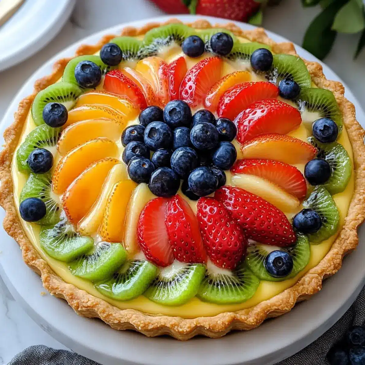 Frisches Obst auf köstlicher französischer Tarte