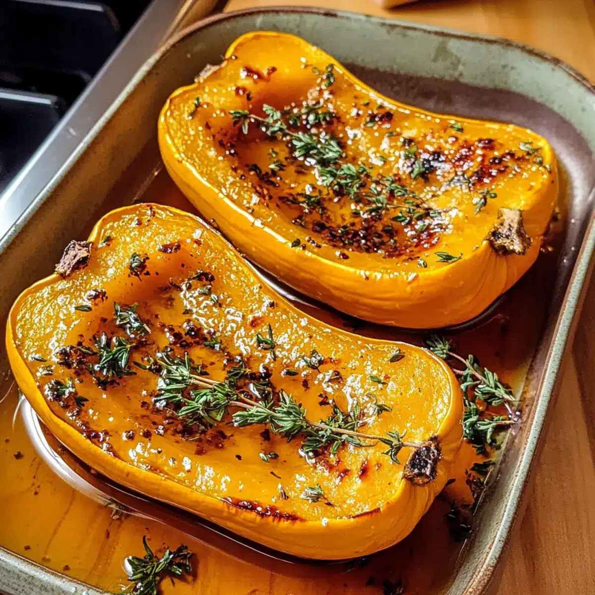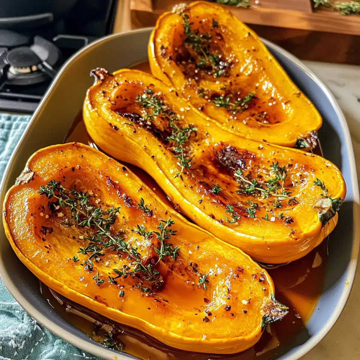 Gerösteter Honigmuskatkürbis mit Ahornsirup