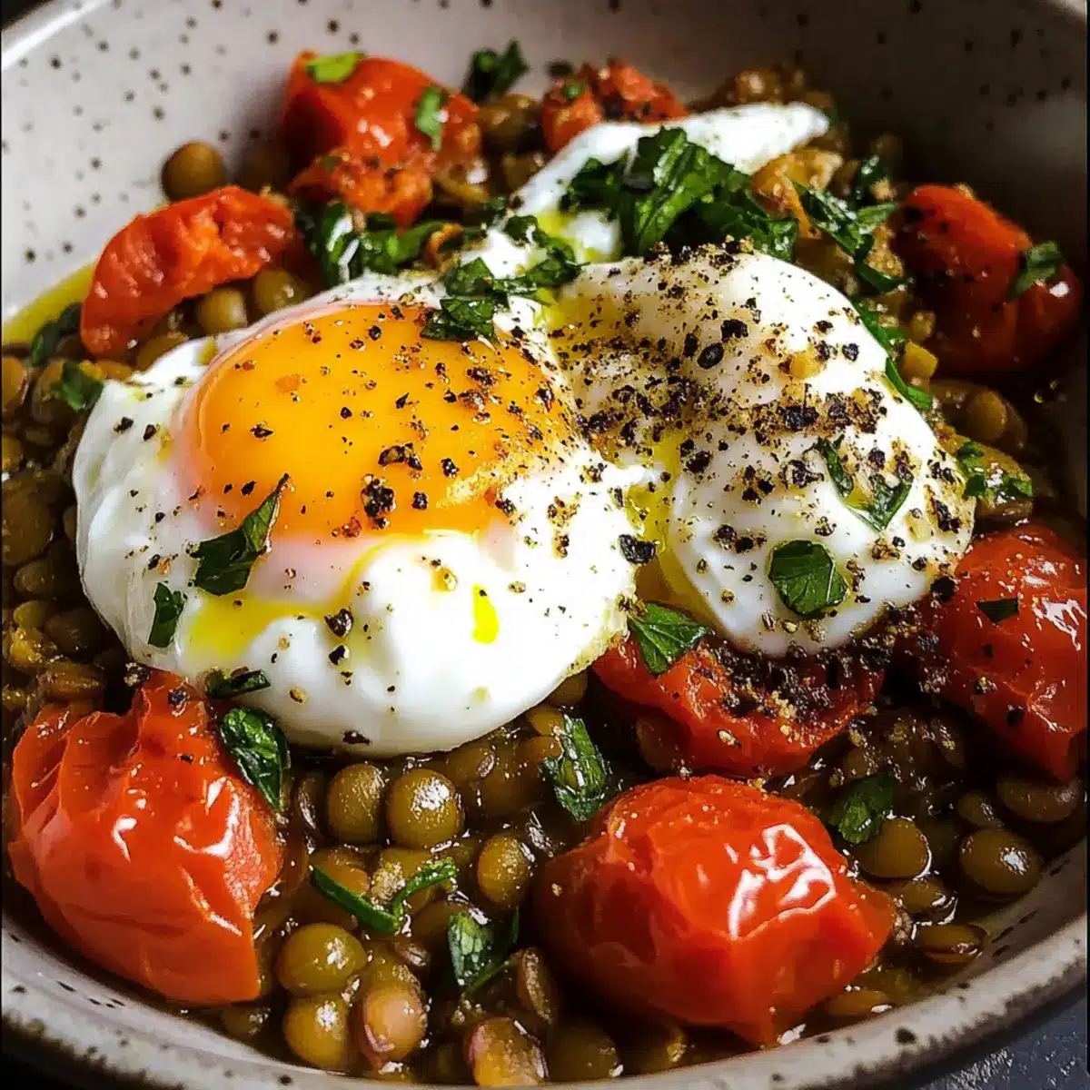 Ich erinnere mich an den Tag, an dem ich zum ersten Mal geschmorte Linsen zubereitet habe. Die Aromen von aromatischen Gewürzen und frischen Kräutern füllten meine Küche und verwandelten sie in ein kleines mediterranes Paradies. Diese mediterranen geschmorten Linsen mit pochiertem Ei sind nicht nur ein Fest für die Sinne, sondern auch ein gesundes Gericht, das in kürzester Zeit zubereitet werden kann. Mit einer cremigen schwarzen Pfeffer-Joghurtschicht und köstlich gerösteten Kirschtomaten ist dieses Rezept sowohl herzhaft als auch leicht – ideal für all jene, die nach einer schmackhaften und nahrhaften Mahlzeit suchen. Bist du bereit, deine Küchenfähigkeiten auf das nächste Level zu bringen? Lass uns gemeinsam kochen!