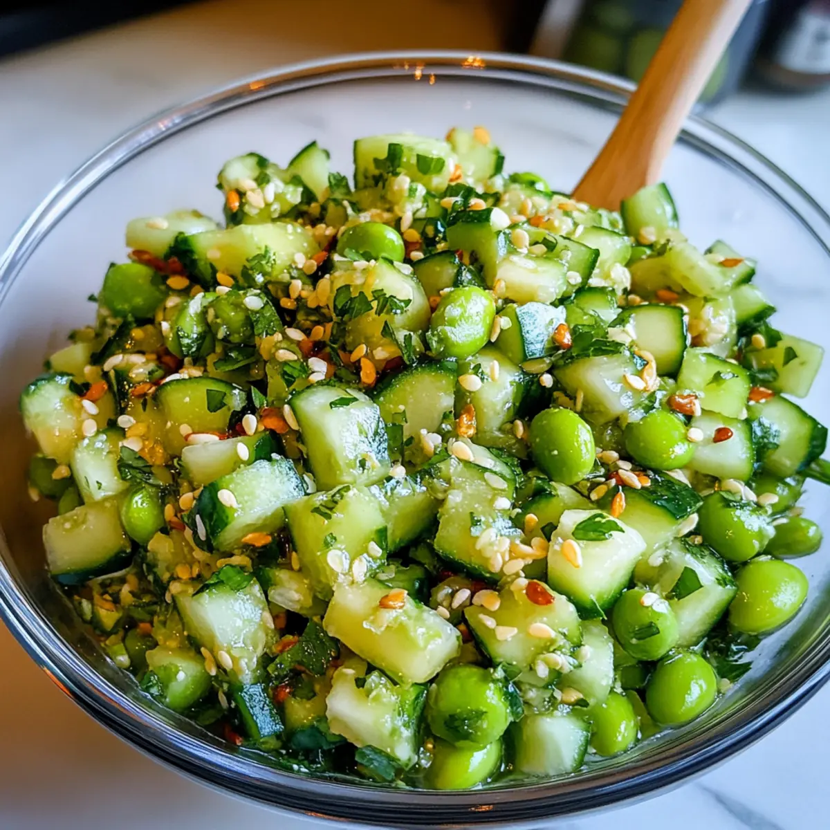 Frische Aromen: Die Kombination aus knackigen Gurken und proteinreichem Edamame sorgt für eine erfrischende Geschmacksexplosion.