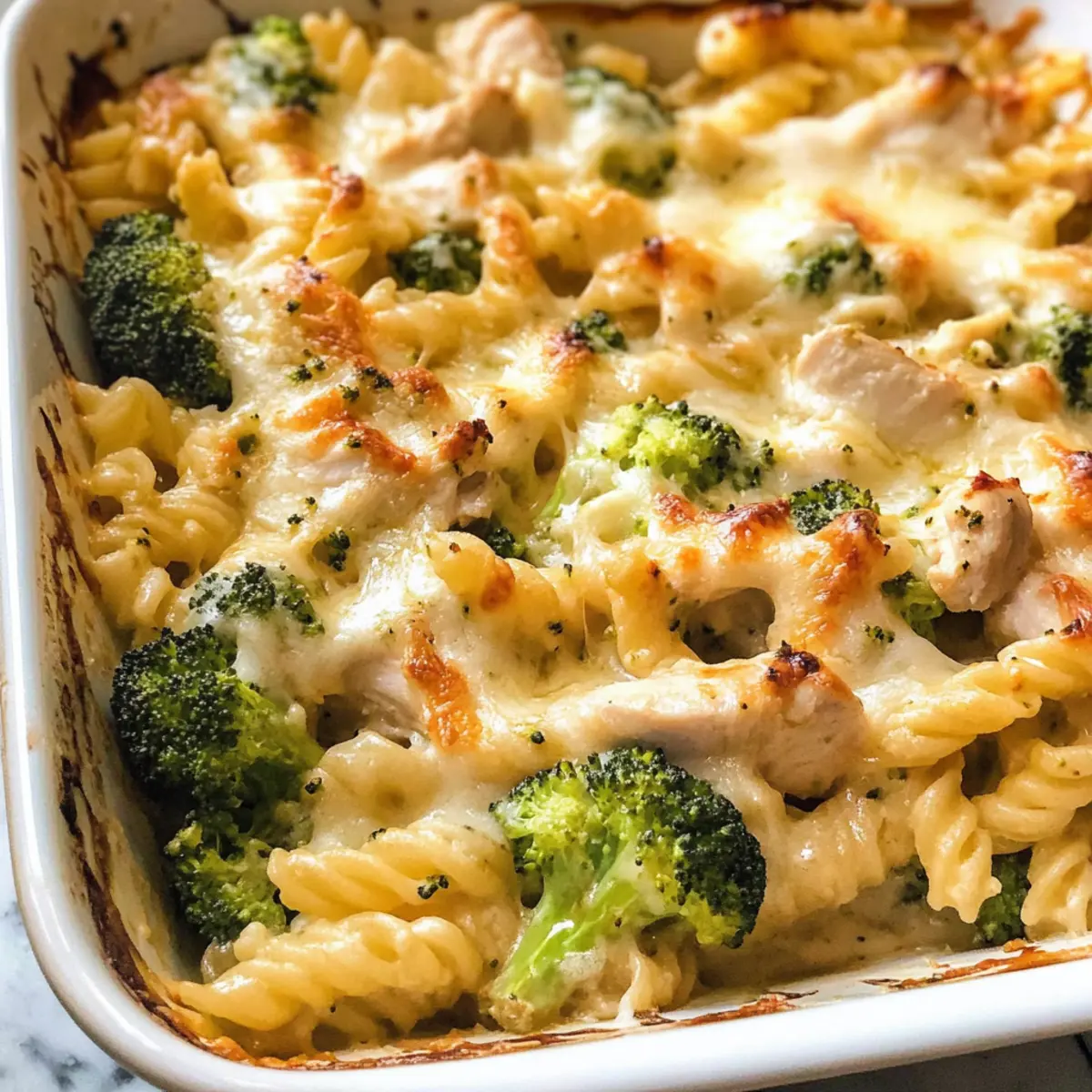 Einfachheit: Dieser Hühnchen und Brokkoli Pasta Bake benötigt nur fünf Minuten Vorbereitung! Perfekt für vielbeschäftigte Tage.