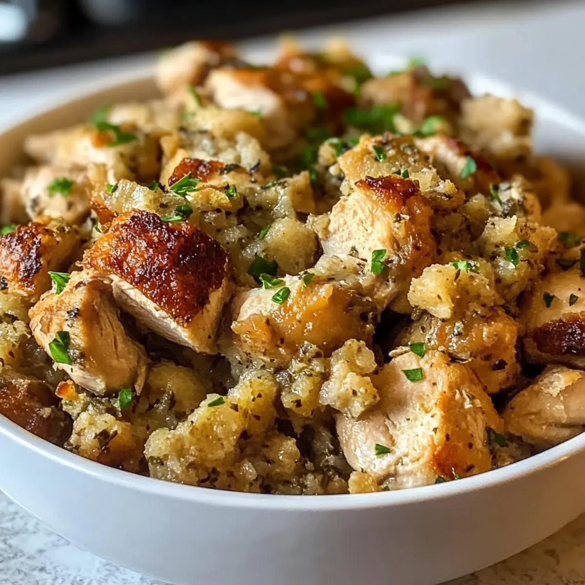 Wiedereinwärmen: Zum Aufwärmen die Mischung in der Mikrowelle oder auf dem Herd erhitzen, bis sie vollständig durchgeheizt ist, damit die Aromen des Hühnchen und der Füllung gleichmäßig verteilt sind.