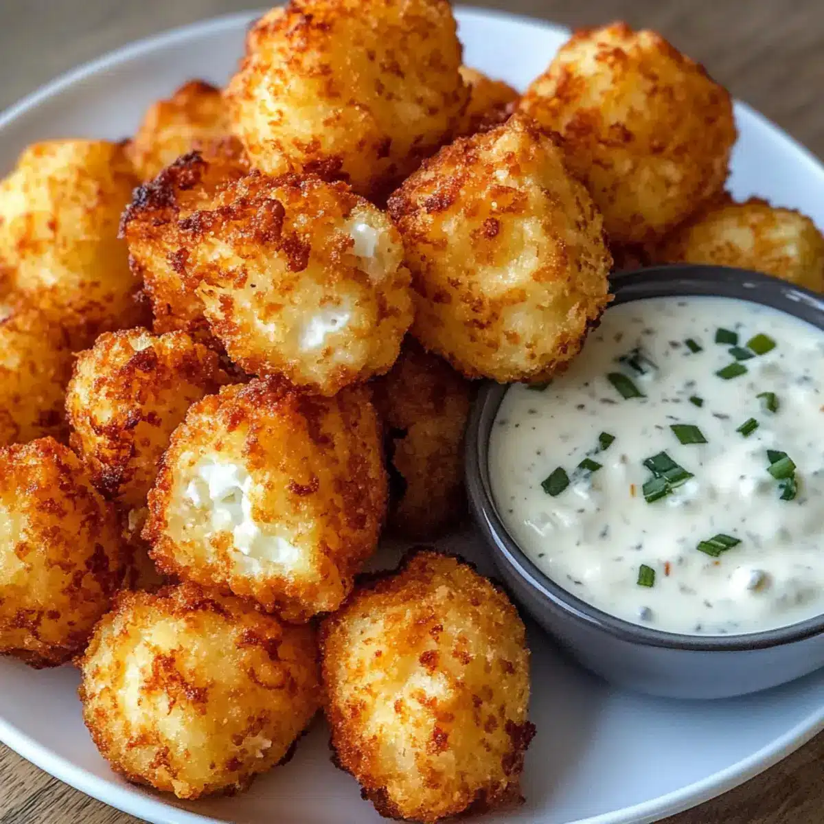 Cremige Ranch-Dip: Dieser Dip ergänzt die knusprigen Tots perfekt und bringt frische Kräuternote mit sich. Ideal, um den Geschmack der Hüttenkäse Tots zu steigern.