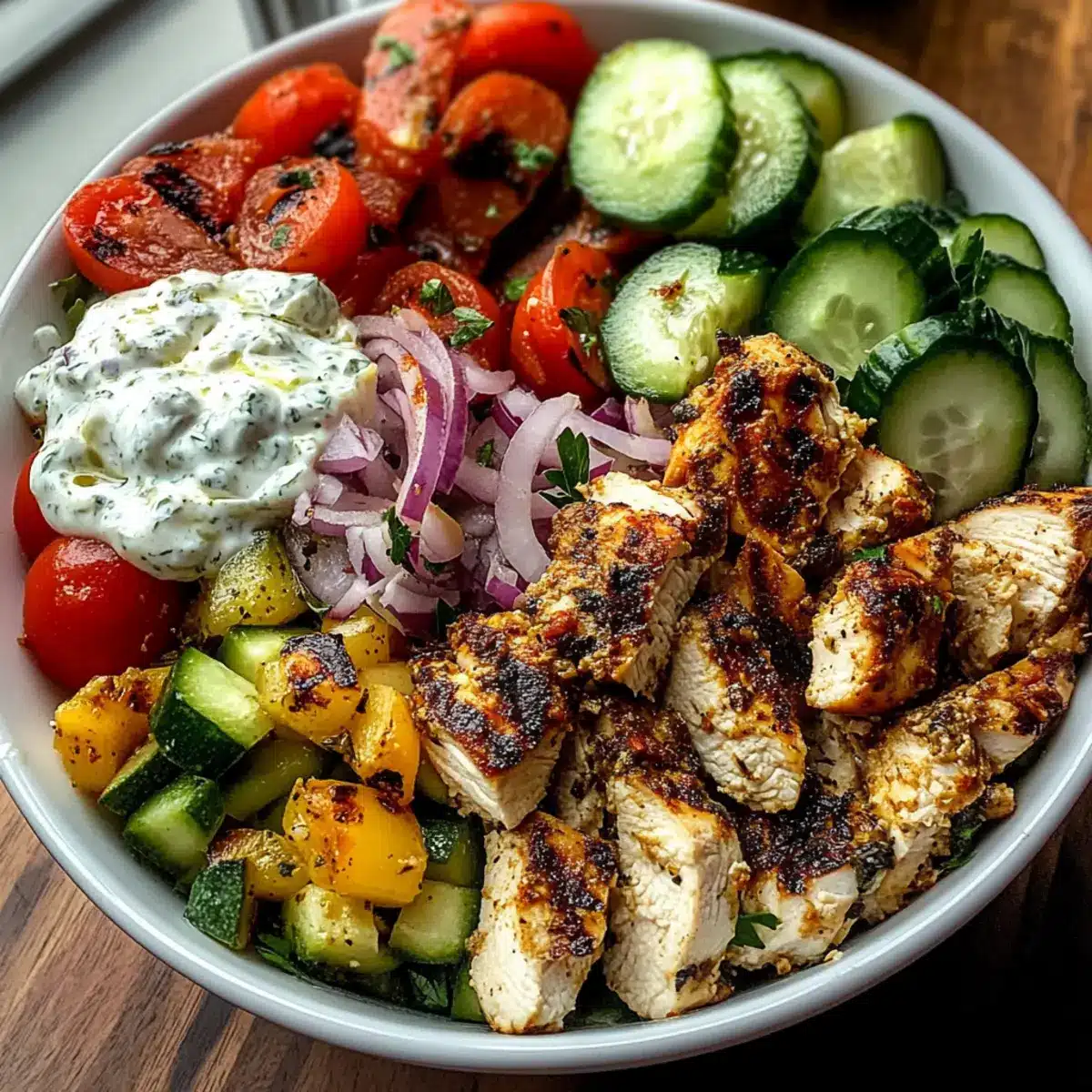 • Kreative Variationen: Experimentiere mit verschiedenen Körnern oder Kräutern, um deine eigene Note hinzuzufügen und Variationen der Hühnchen Gyro Schüssel zu kreieren.