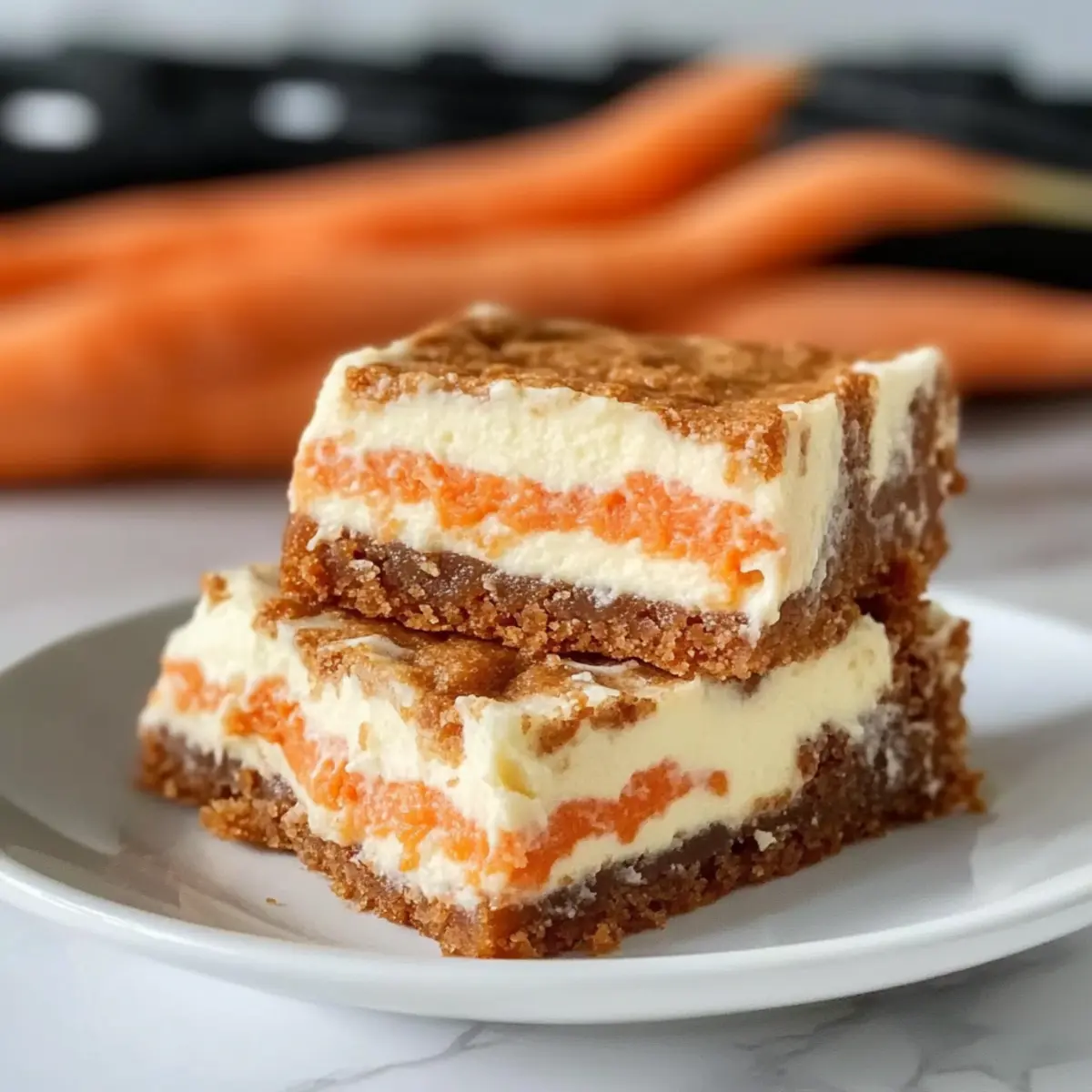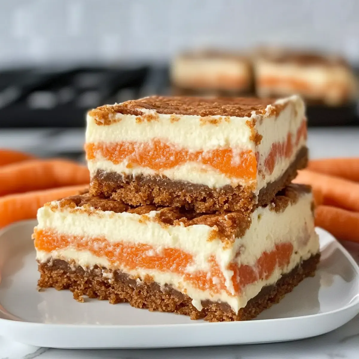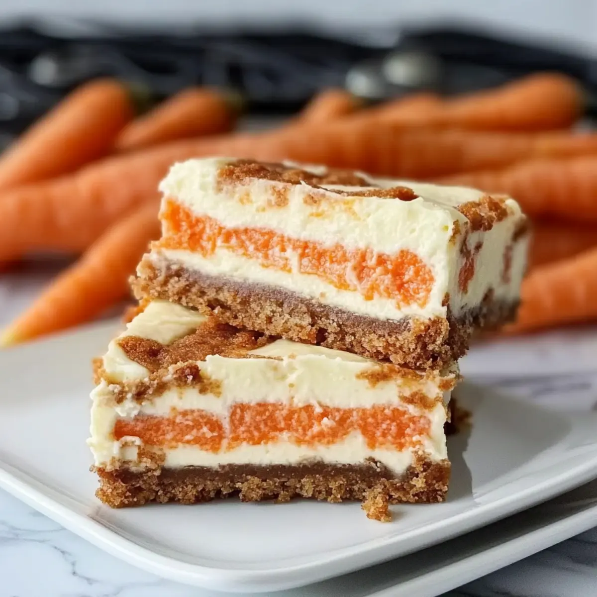 Köstliche Kombination: Diese Käsekuchenriegel vereinen die Süße von Karottenkuchen und die Cremigkeit von Käsekuchen in einem perfekten Dessert.