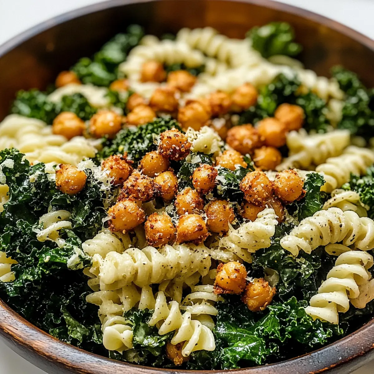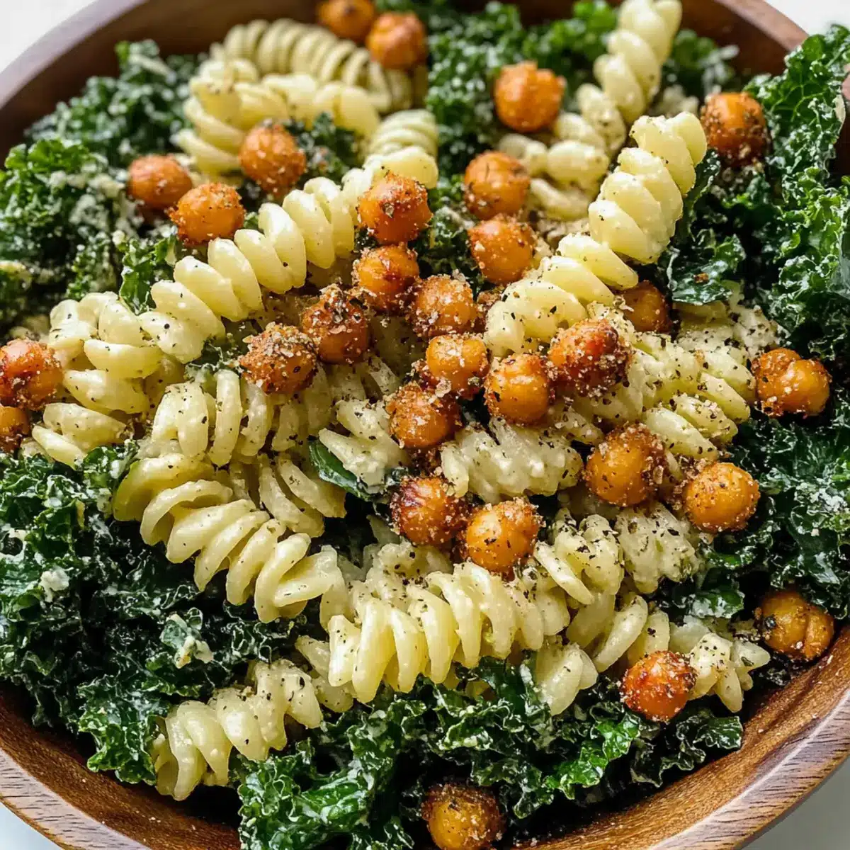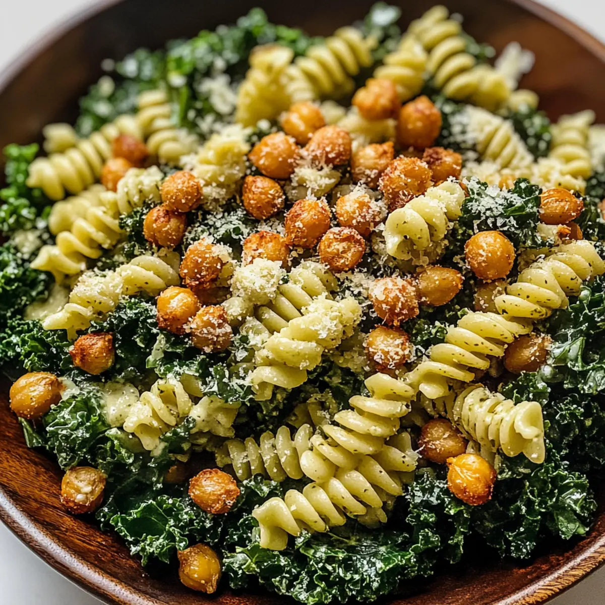 Einzigartiger Twist: Dieser Kale Caesar Pasta Salad bringt frischen Wind in die klassische Version.