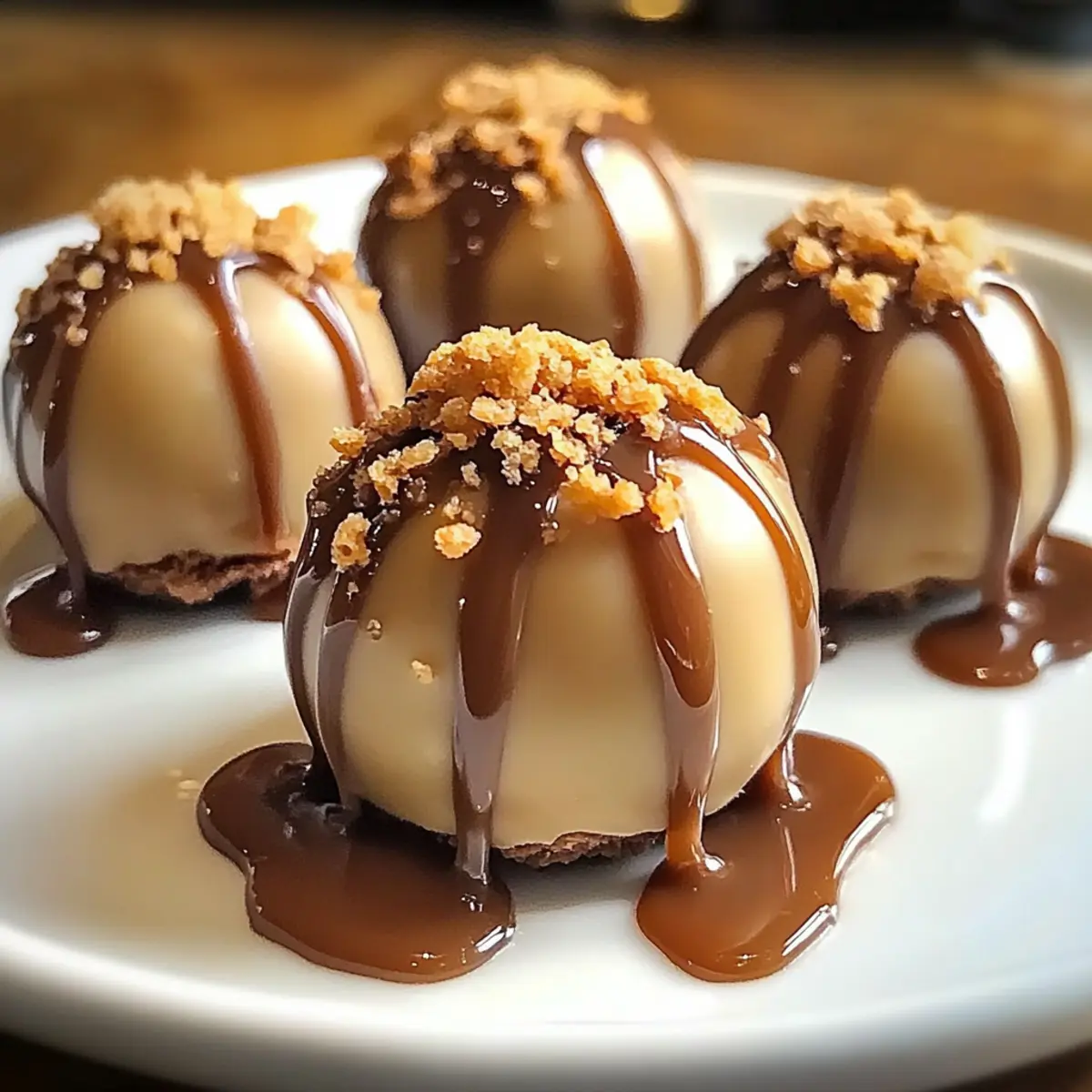 - Erhitze die Karamellsauce und träufele sie über die Trüffel.