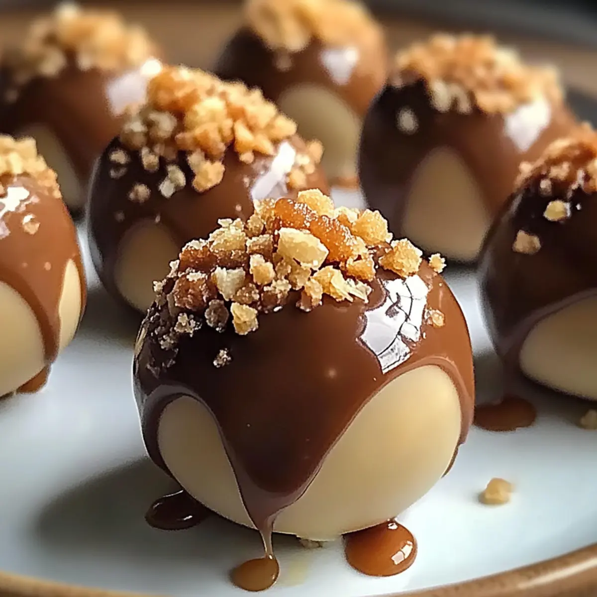 Nehme die Karamell-Apfel-Trüffel aus dem Kühlschrank und lasse sie bei Raumtemperatur anrichten. Diese süßen Leckerbissen sind perfekt für das Teilen bei Festlichkeiten oder einfach zum Genießen zu Hause.