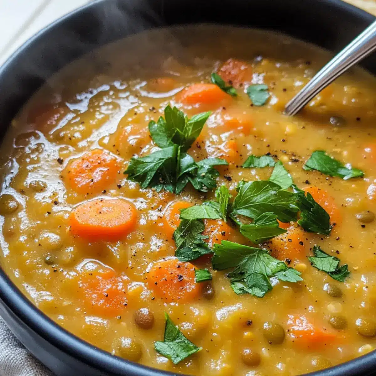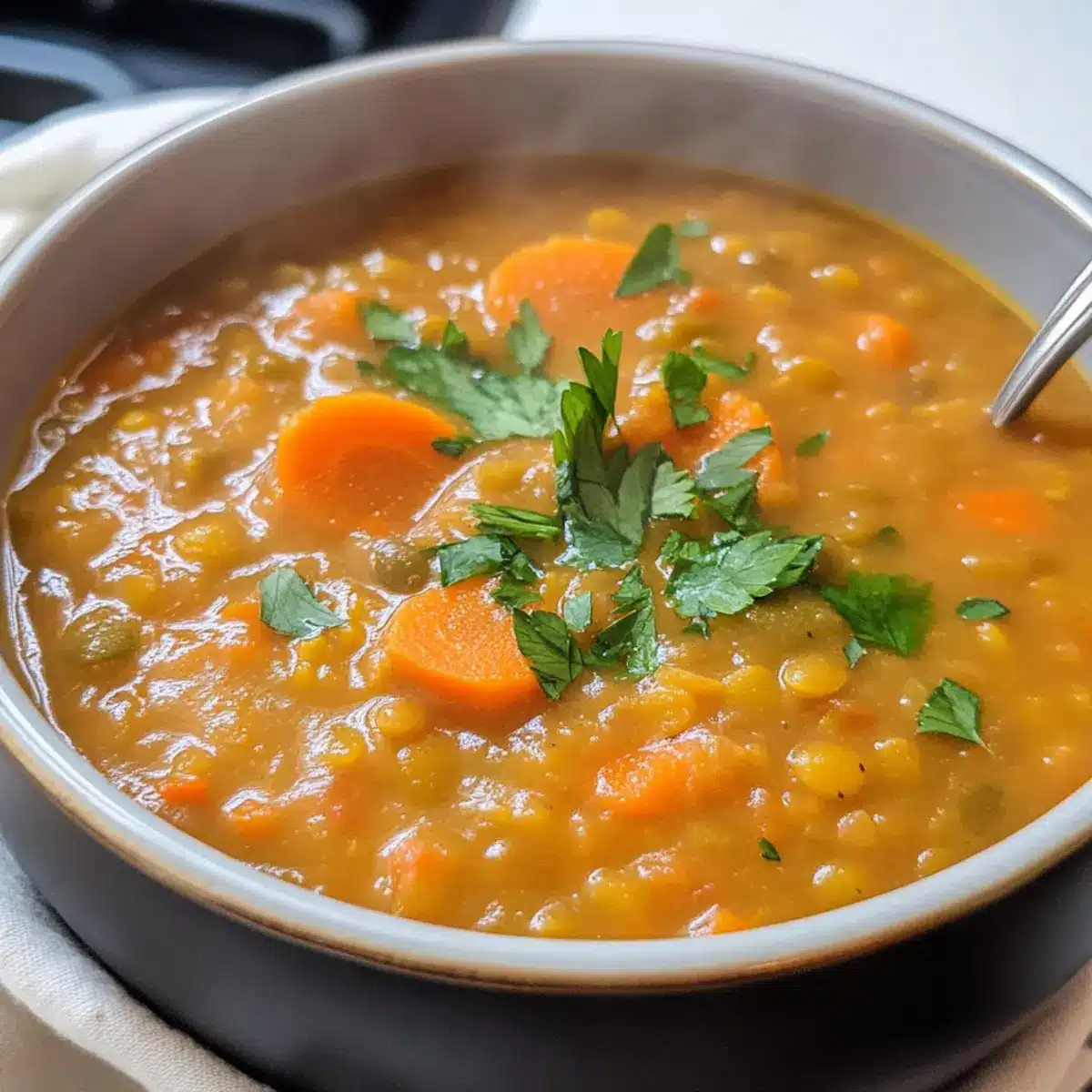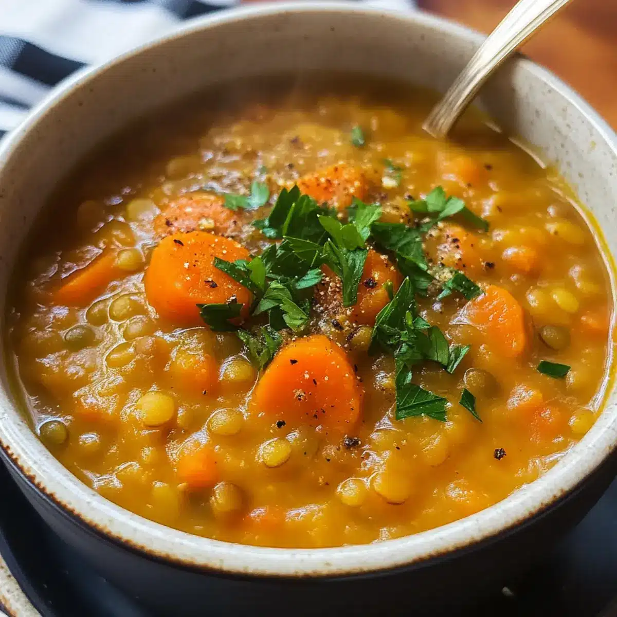 Wenn du eine cremigere Textur möchtest, püriere einfach die Hälfte der Suppe in einem Mixer und rühre sie dann zurück in den Topf. Das sorgt für eine samtige Konsistenz, während die Stücke der Karotten und Linsen erhalten bleiben. Überlege auch, beim letzten Schritt etwas mehr Brühe hinzuzufügen, falls die Suppe zu dick wird.
