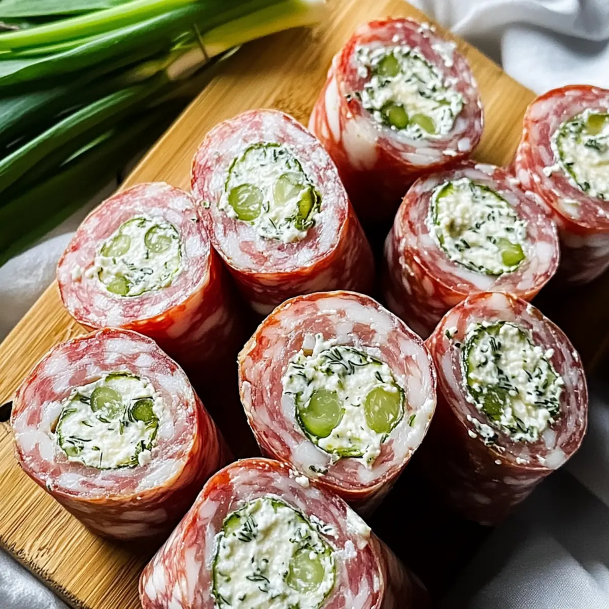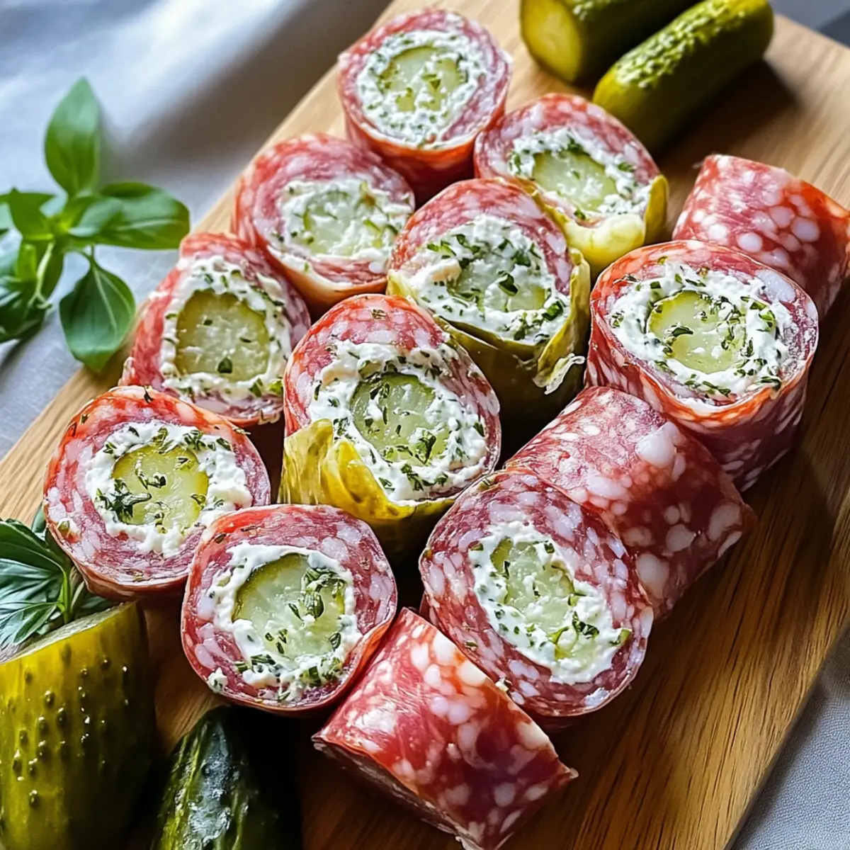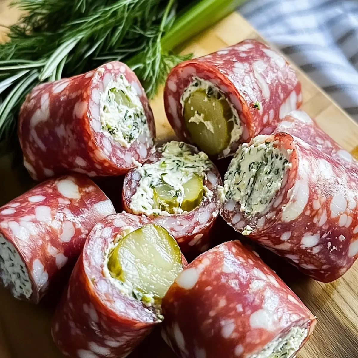Köstliche Geschmackskombination: Die Mischung aus würziger Salami, cremigem Frischkäse und pikanten Dillpickles sorgt für eine Geschmacksexplosion.