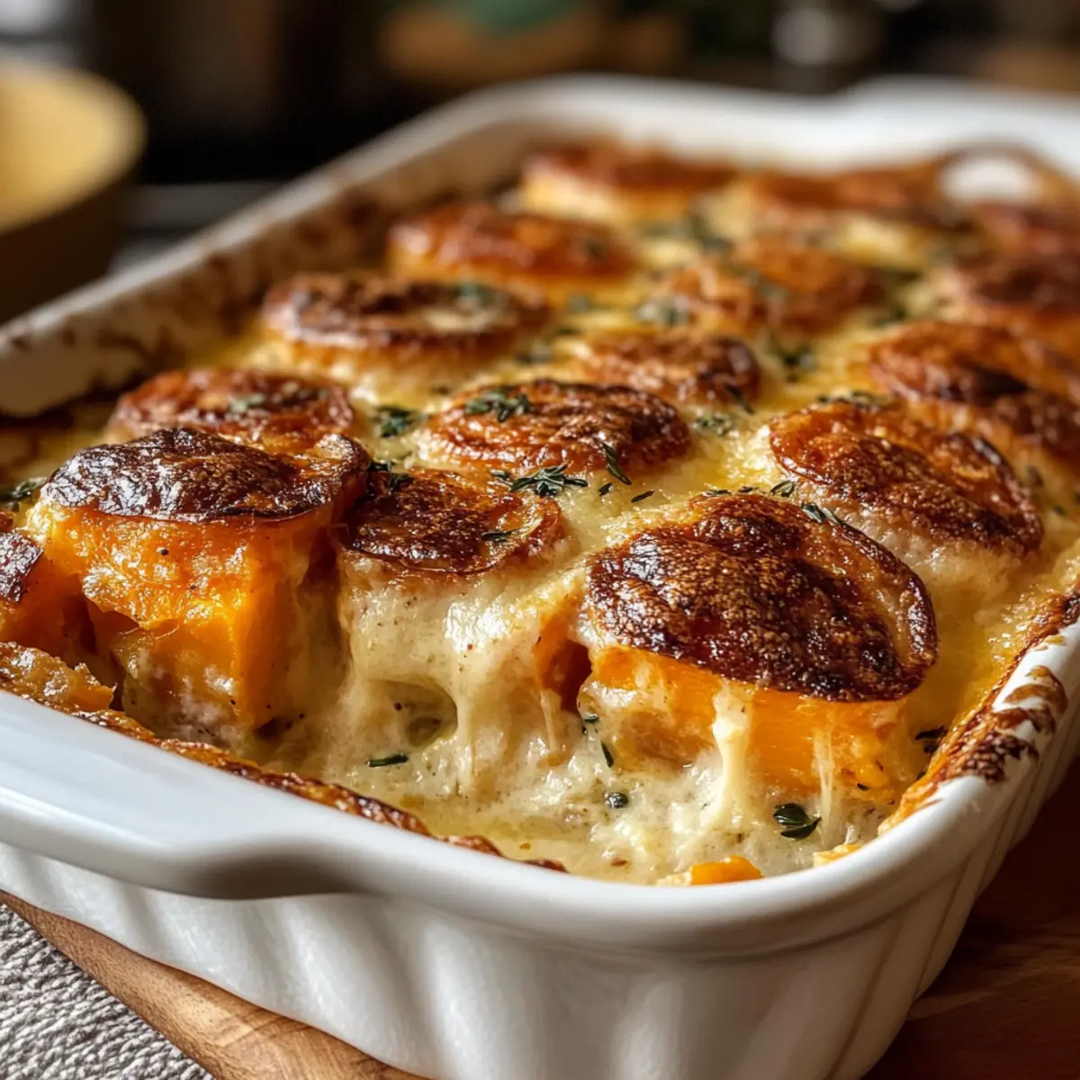 - Käse (Gruyère, Mozzarella oder Cheddar) – bringt einen cremigen, herzhaften Geschmack, der die Süßkartoffeln ergänzt ohne sie zu überladen.