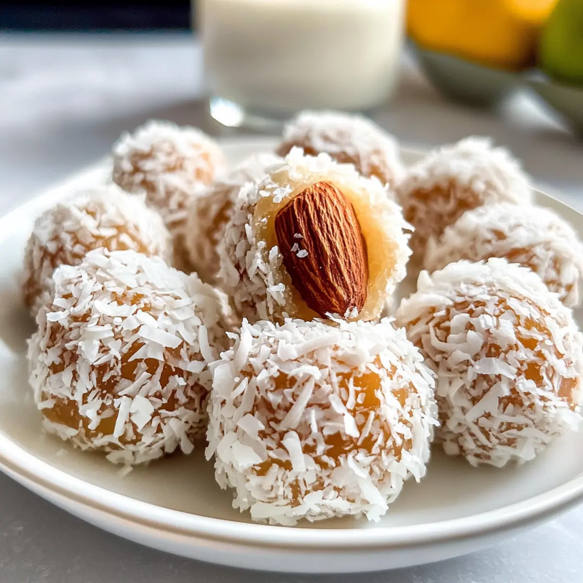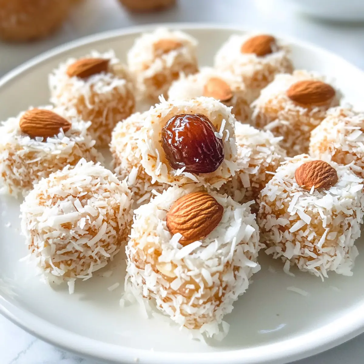 Für einen zusätzlichen Crunch, drücke eine Mandel in die Mitte jeder Kugel, bevor du die Kokosnuss-Datteln-Rollen fertigstellst. Achte darauf, dass die Mandel gut im Dattelball verankert ist, damit sie beim Essen nicht herausfällt. Dieser Schritt fügt nicht nur Textur hinzu, sondern auch einen nussigen Geschmack, der hervorragend zu den süßen Datteln passt.