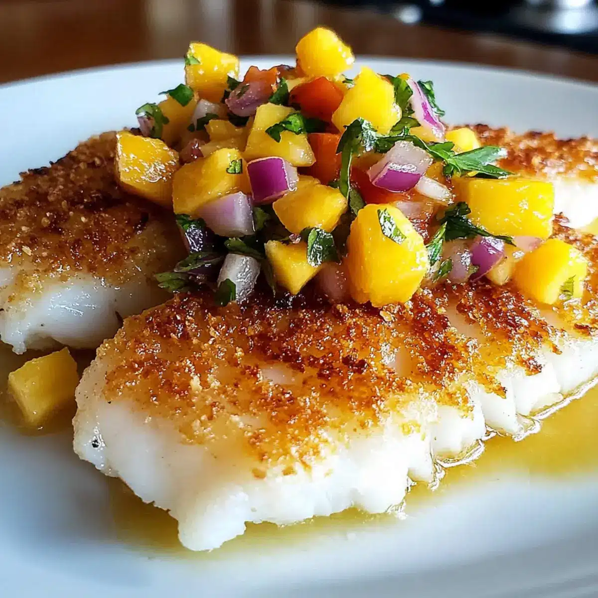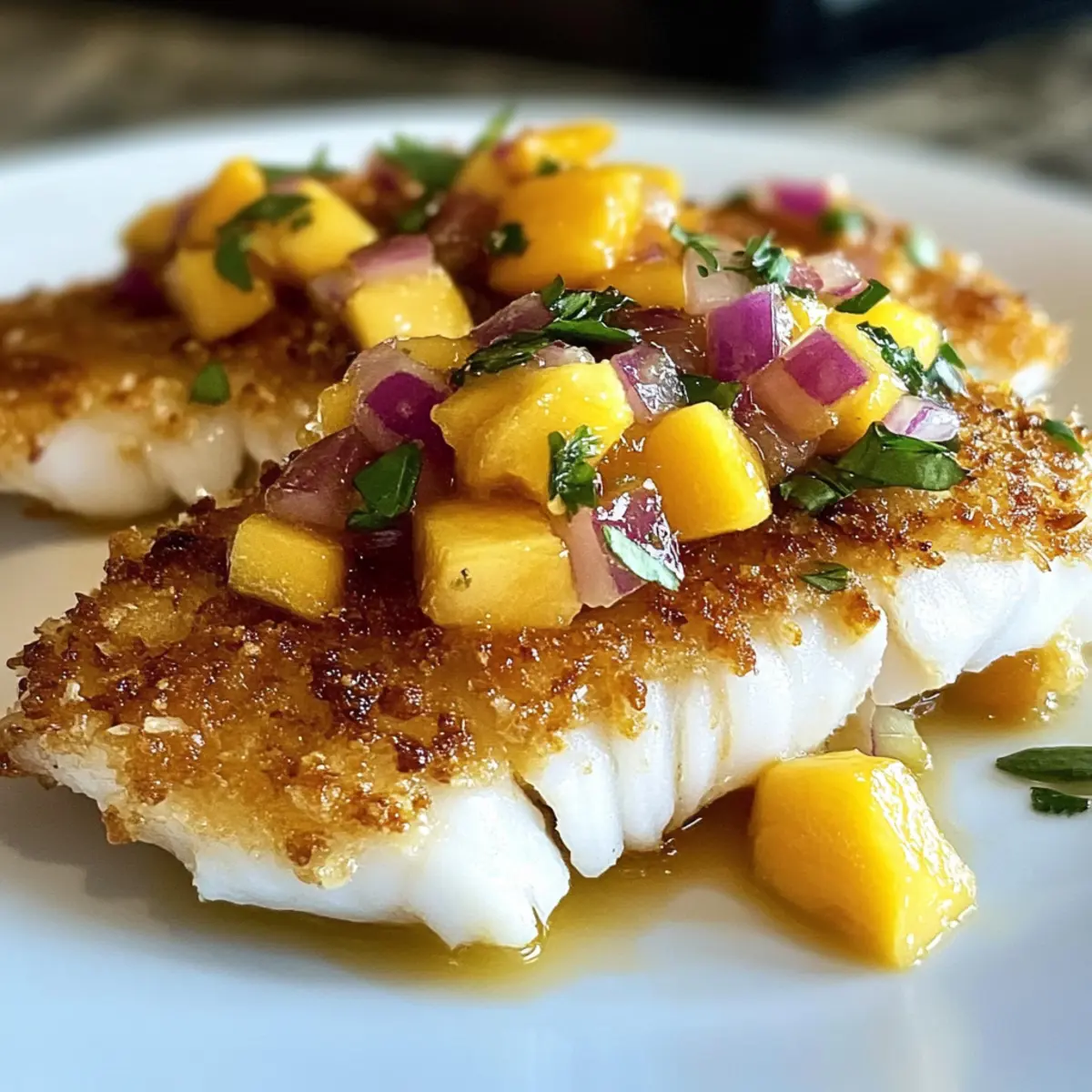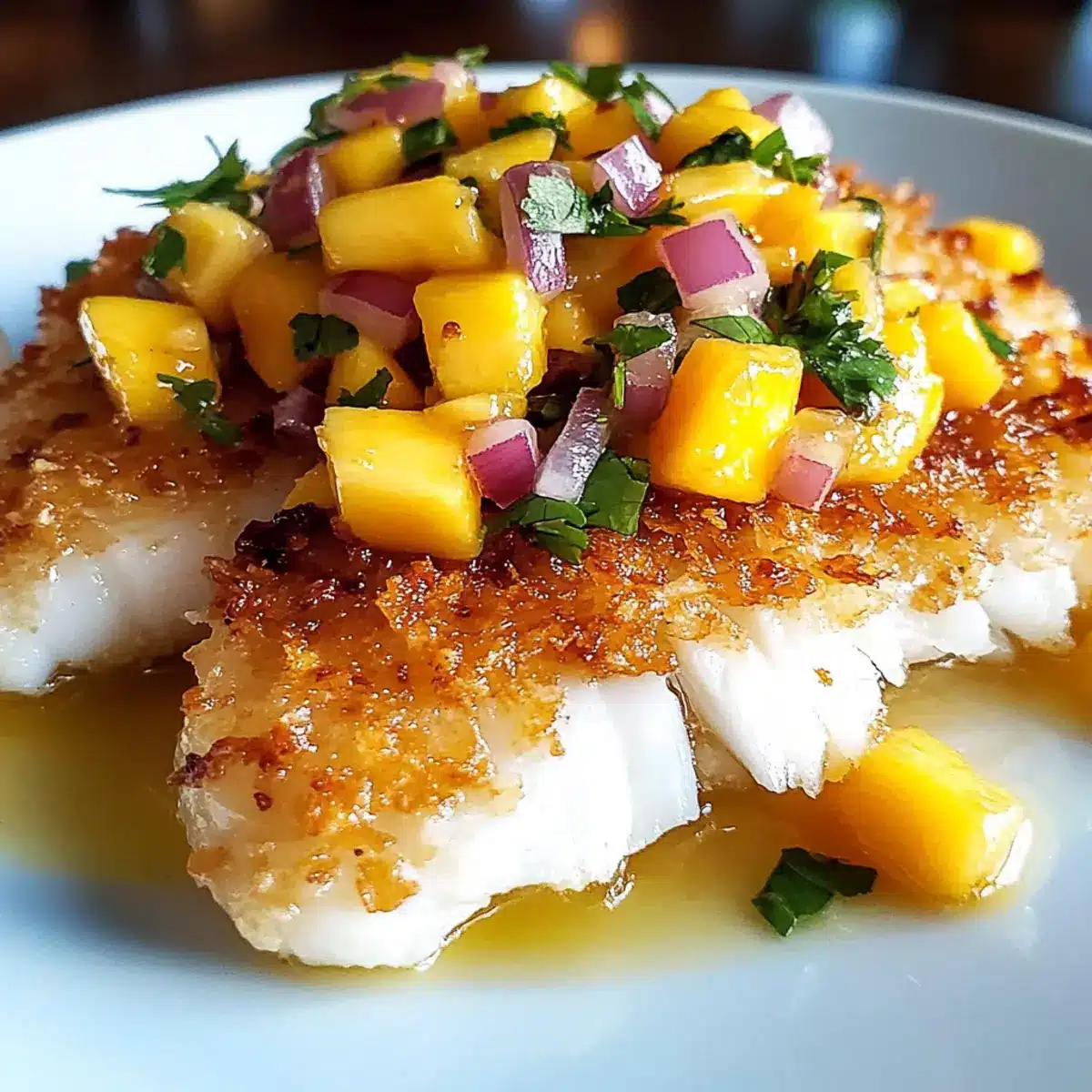 Kokosnusskruste Fisch mit Mango Salsa genießen