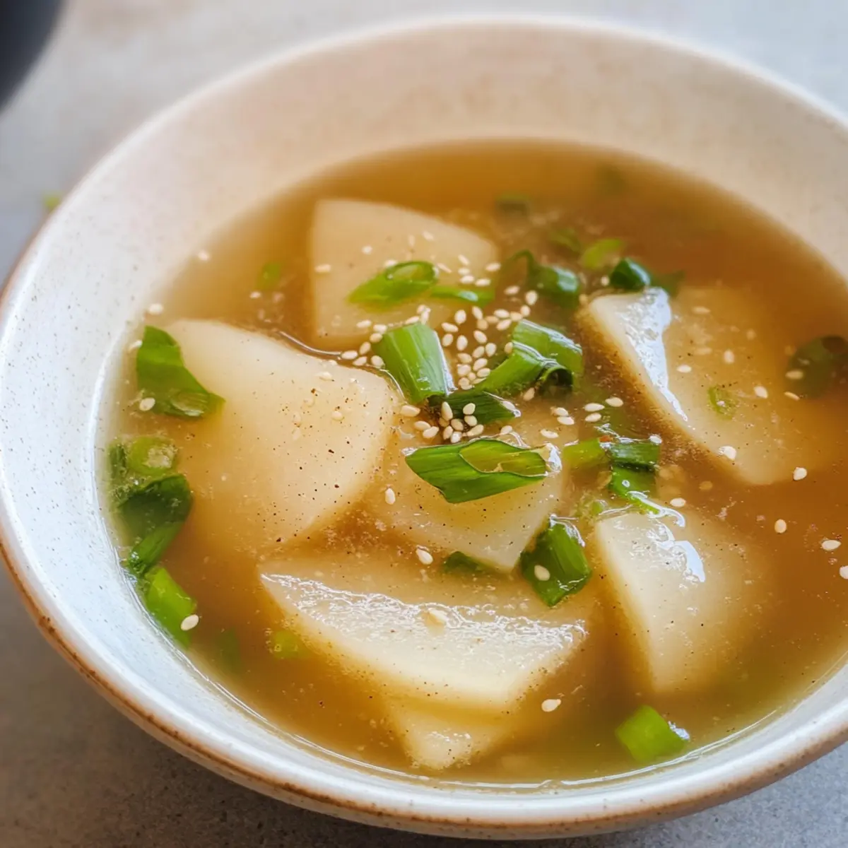 Wohlfühlfaktor: Diese Vegetarische koreanische Rettichsuppe sorgt sofort für Wärme und Komfort, ideal für kalte Tage.