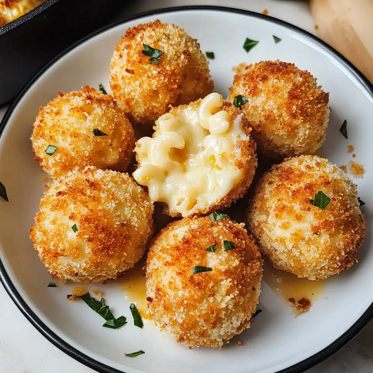 Nach dem Frittieren die Bällchen einige Minuten abkühlen lassen, bevor Sie sie servieren. Genießen Sie Ihre Crispy Macaroni und Käsebällchen mit Ihrem Lieblingsdipp, wie zesty Marinara oder einer würzigen Ranch-Dressings für das ultimative Snack-Erlebnis!