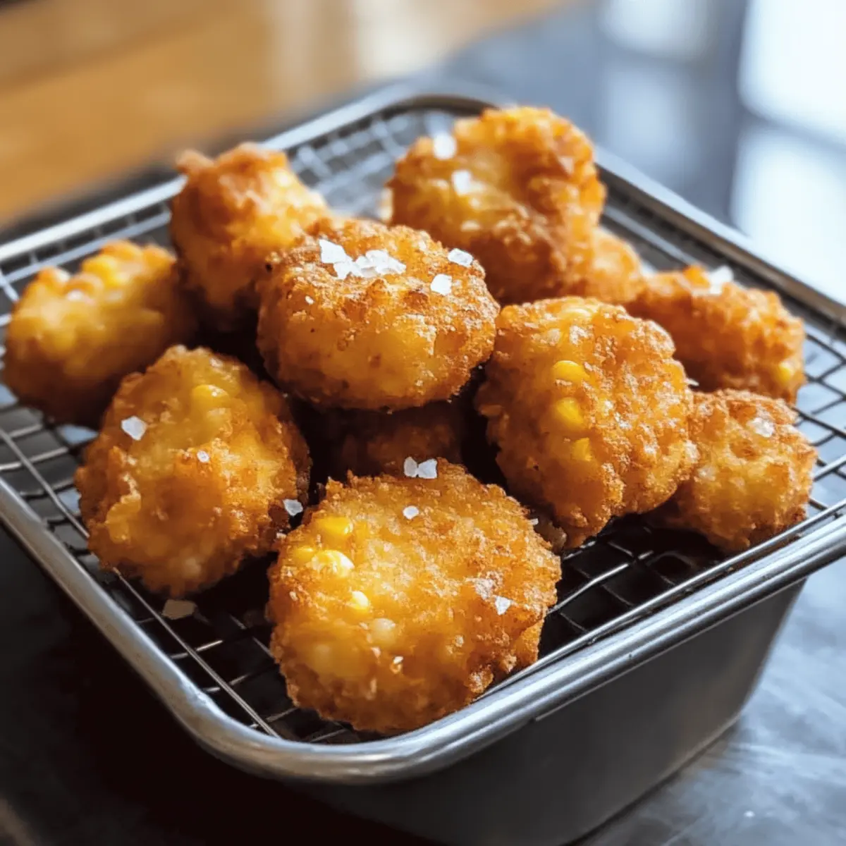 Knusprigkeit garantiert: Diese Maisnuggets bieten den perfekten Crunch beim ersten Bissen. Vielfältige Variationen: Egal, ob Sie Käse oder Schärfe hinzufügen möchten, es gibt zahlreiche Anpassungsmöglichkeiten, um jeden Geschmack zu treffen. Schnell zuzubereiten: Mit nur wenigen Schritten sind Sie im Handumdrehen fertig – ideal für spontane Snacks oder Gäste. Gesunde Snack-Option: Diese Leckerei ist vegetarisch, glutenfrei und enthält weniger als 125 Kalorien pro Portion, sodass Sie ohne schlechtes Gewissen genießen können. Familienfreundlich: Kinder und Erwachsene lieben diese knusprigen Nuggets gleichermaßen, perfekt für Filmabende oder Partys. Mit diesem Rezept zaubern Sie im Nu ein beliebtes Gericht, das jeder liebt!