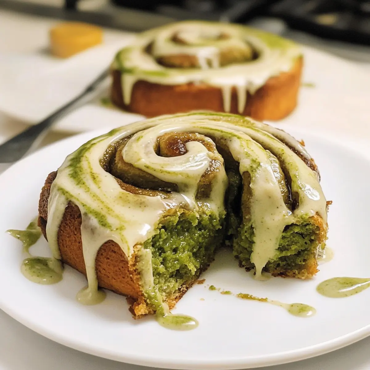 Himmlische Matcha Zimtschnecken mit Frischkäse-Frosting