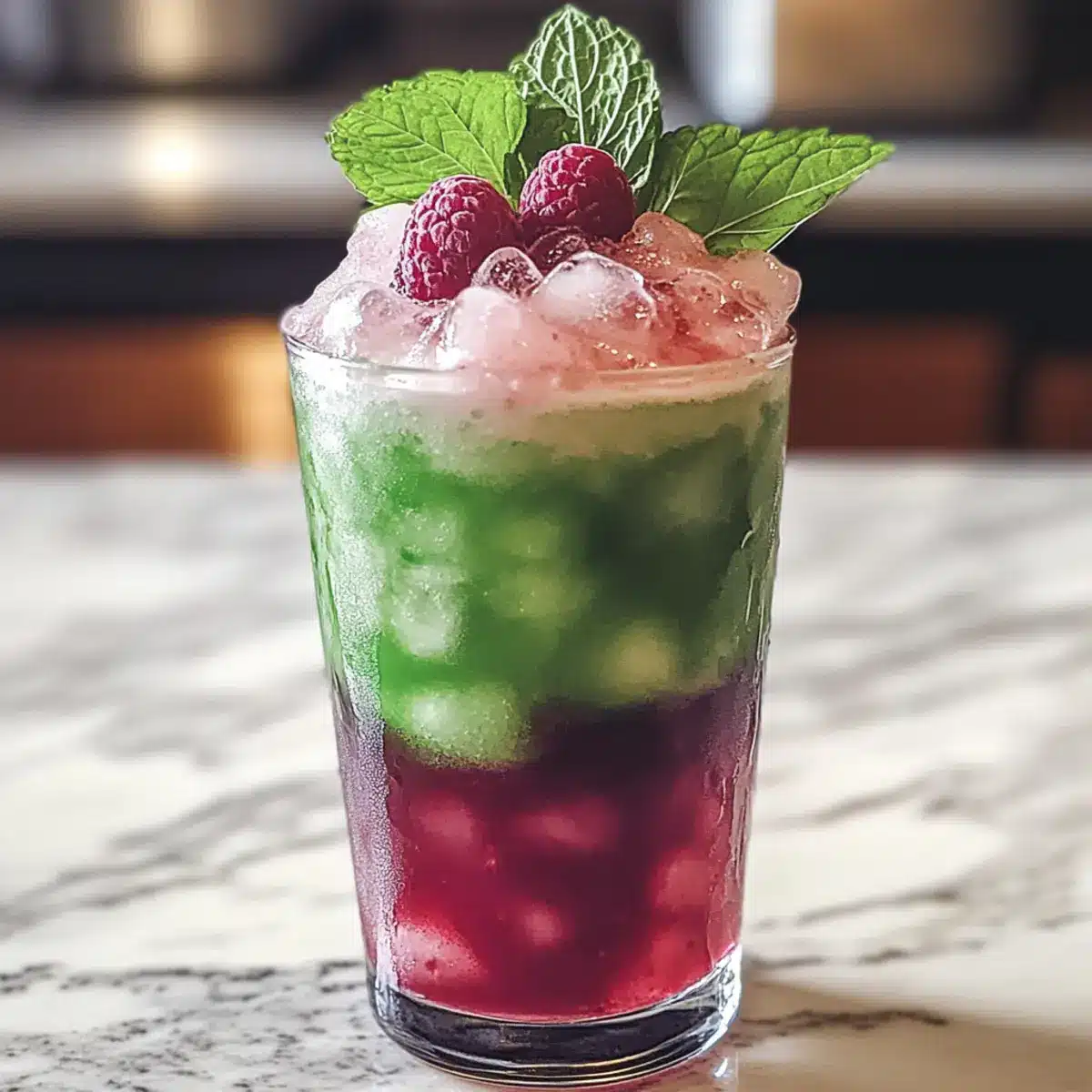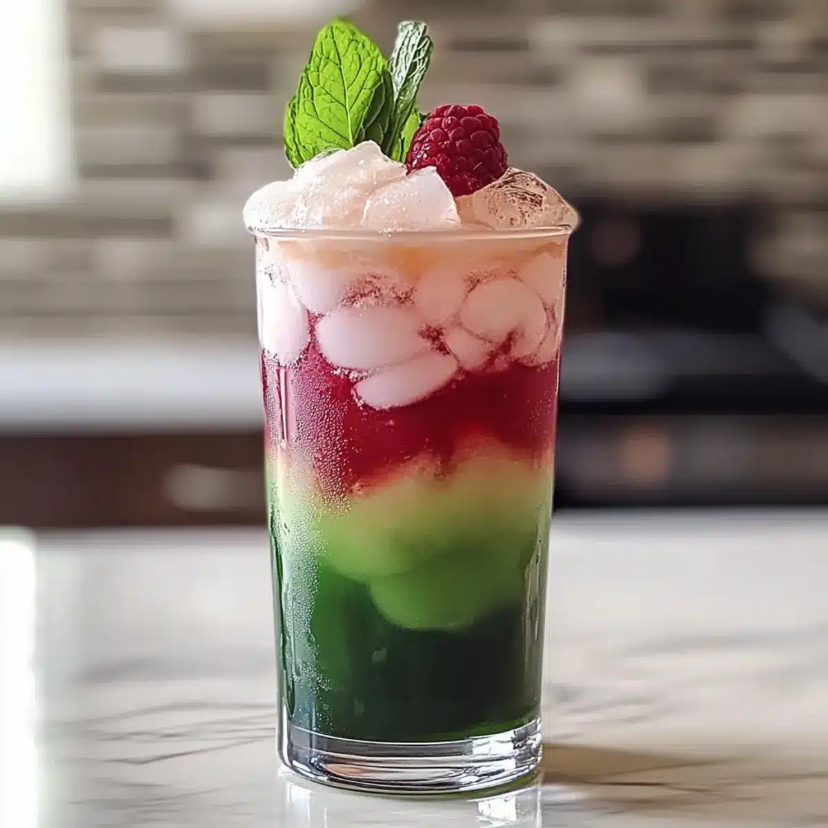 • Langsame Grenadine: Gieße die Grenadine vorsichtig in die Mitte des Glases, um das schöne Schichtspiel zu erzeugen; das verleiht deinem Melonen-Soda-Float einen beeindruckenden Look.
