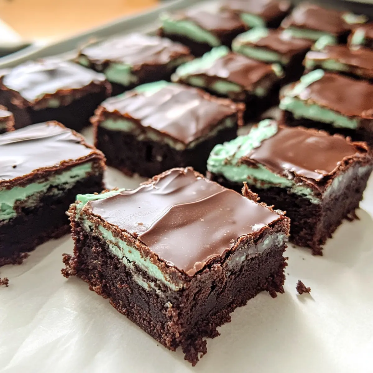 - Lass die Schokoladenschicht fest werden, bevor du die Minz-Braunies in Quadrate schneidest.