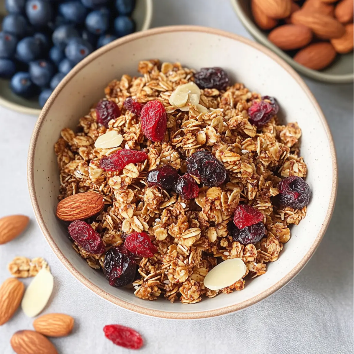 Achte bei der Auswahl der getrockneten Früchte auf die Farbe und Konsistenz. Vermeide Früchte mit dunklen Flecken oder einem hartnäckigen Gefühl, da diese oft nicht frisch sind. Nüsse sollten knusprig und aromatisch duftend sein. Ich empfehle, bei Mandeln und Walnüssen auf die Röstung zu achten, da geröstete Nüsse den Geschmack deines Granolas intensivieren.